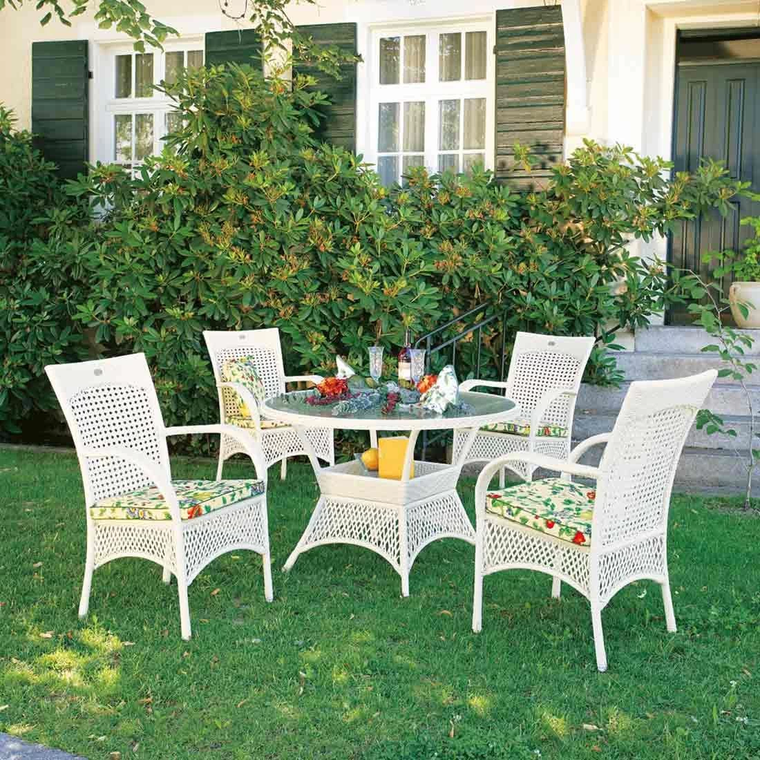 Für den Korpus und die Sitzfläche kommt Polyrattan-Geflecht zum Einsatz. Das Gestell besteht aus pflegeleichtem und wetterfestem Aluminium. Für ein perfekt stimmiges Gesamtbild sorgt die einheitliche Farbgebung in stilvollem Weiß.