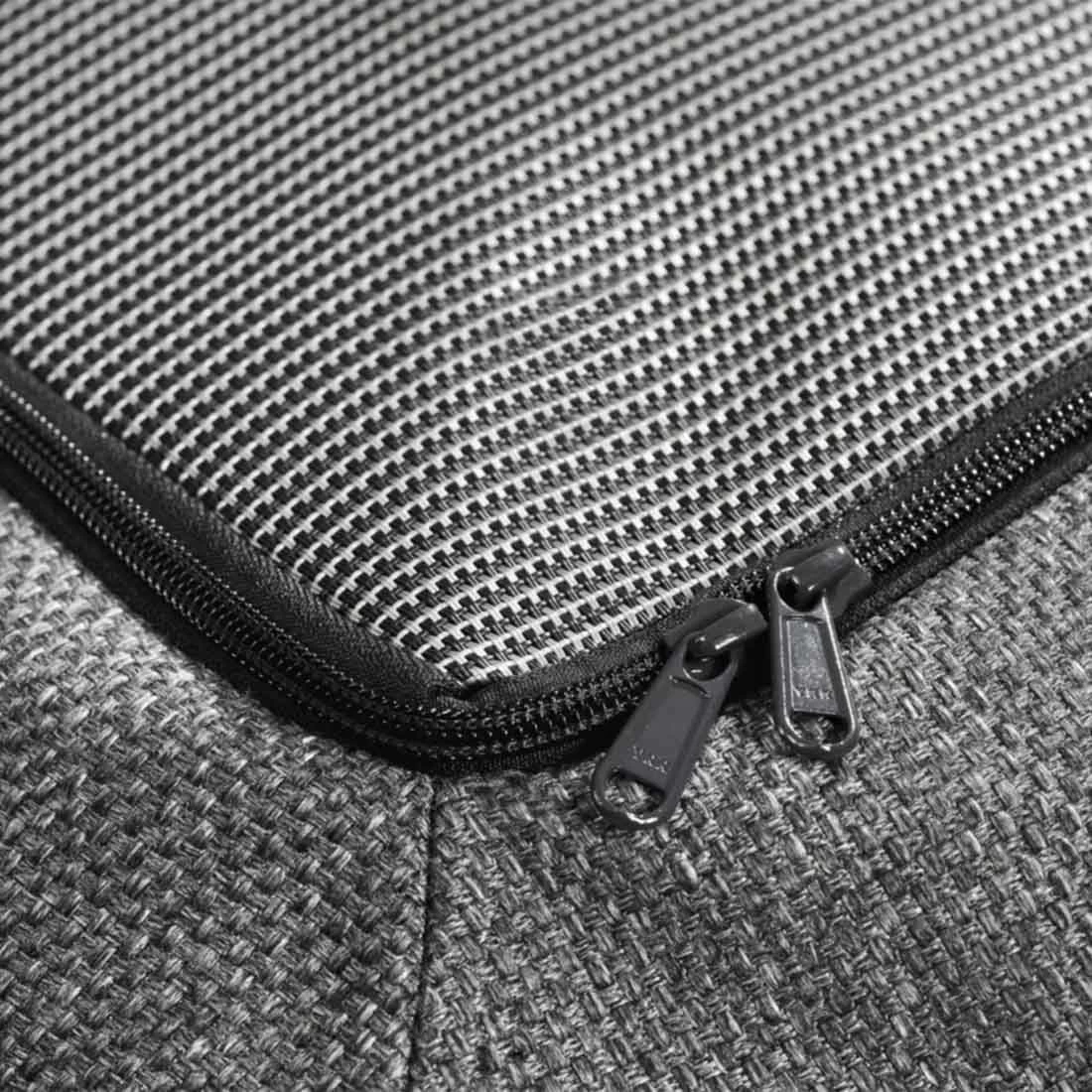 Der Bezug in der Farbe Coal ist aus hochwertiger Kunstfaser gefertigt. Dadurch ist die Außenhülle wasserundurchlässig, sodass Sie den Pouf auch bei länger andauernder Feuchtigkeit draußen belassen können.