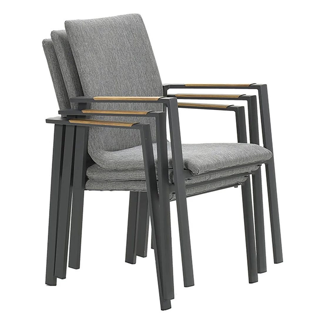 Ein weiterer Pluspunkt des Stapelsessels ist die Bespannung mit Textilene in der Farbe Grau. Dieser Bezugsstoff überzeugt durch eine hohe Robustheit gegenüber Hitze und Frost aus und ist leicht zu reinigen. Ihr Vorteil: Wenn Sie mehrere Exemplare des Modells Ottawa besitzen, können Sie diese äußerst kompakt und platzsparend aufbewahren, indem Sie diese stapeln. Der Stapelsessel ist bis zu einem Gewicht von 120 kg belastbar. Die Sitzbreite von 44 cm und die Sitztiefe von 47 cm machen den Stapelsessel besonders komfortabel. Die Sitzhöhe liegt zudem bei angenehmen 45 cm.