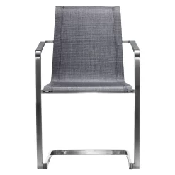 Stern Cardiff Hochlehner-Stapelsessel Edelstahl/Textilene Mit Teakholz-Armlehnen Silber/Silbergrau