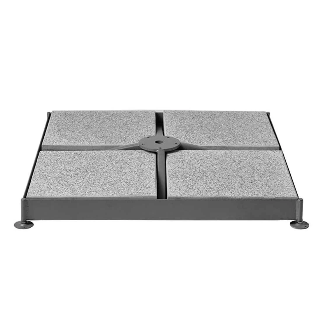 Lieferumfang: 8 Platten Beton 40x40x4 cm. Das Gesamtgewicht des Schirmsockels beträgt inkl. des Platten-Sets ca. 120 kg.