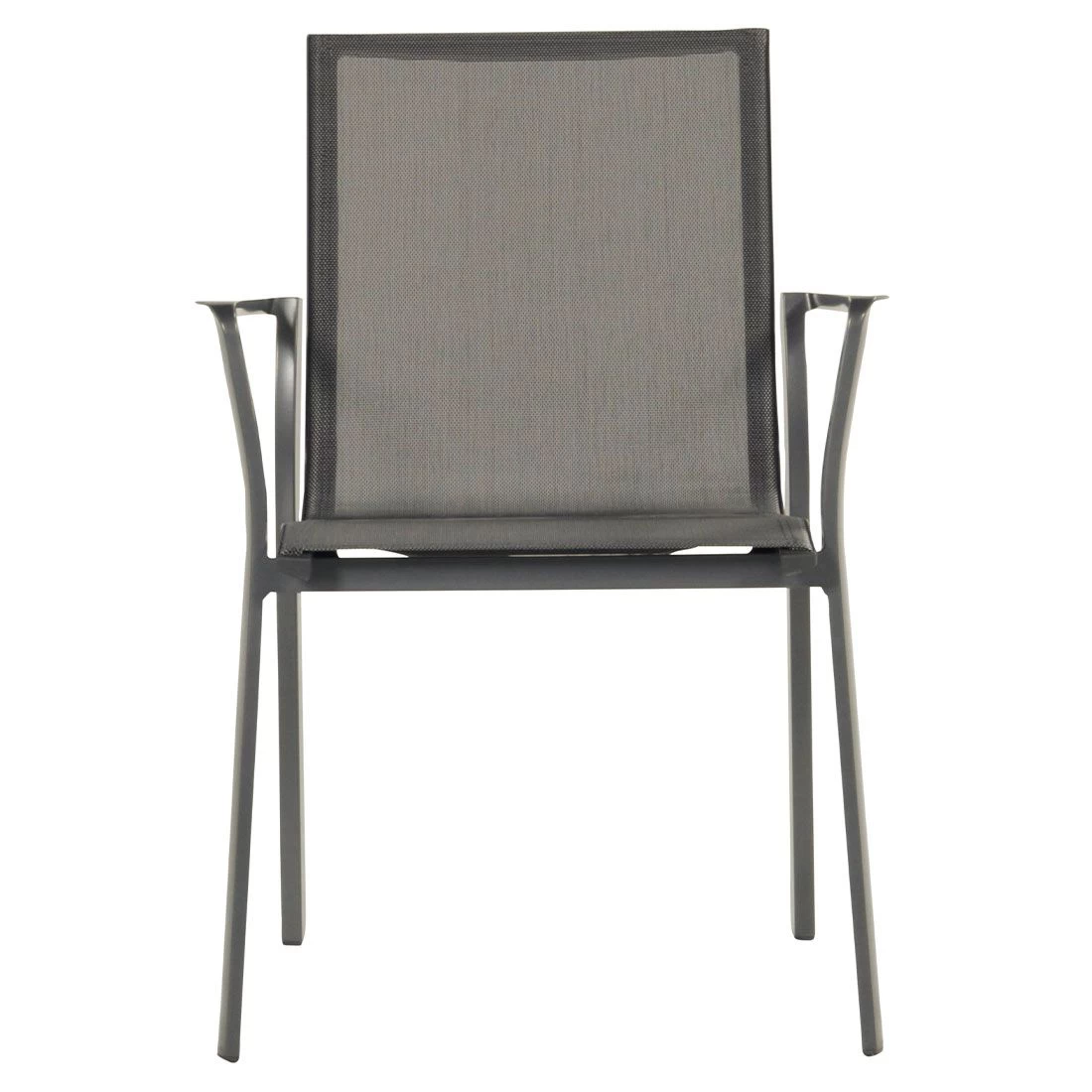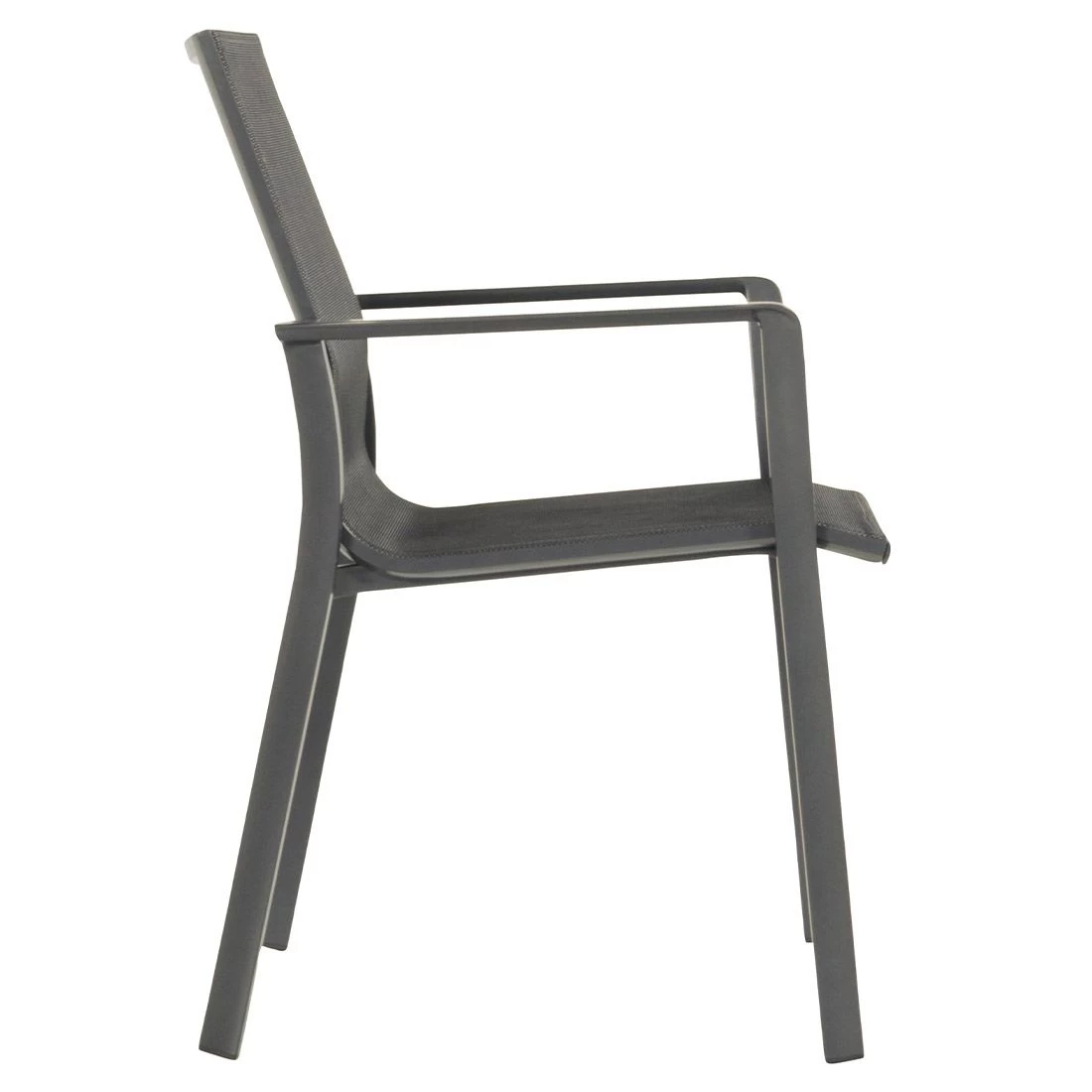 Das Gestell wird aus Aluminium in der Farbe Anthrazit gefertigt. Das geringe Eigengewicht des Materials macht den Stapelsessel zu einem robusten, aber dennoch leicht zu transportierenden Sitzmöbel auf Ihrer Terrasse.