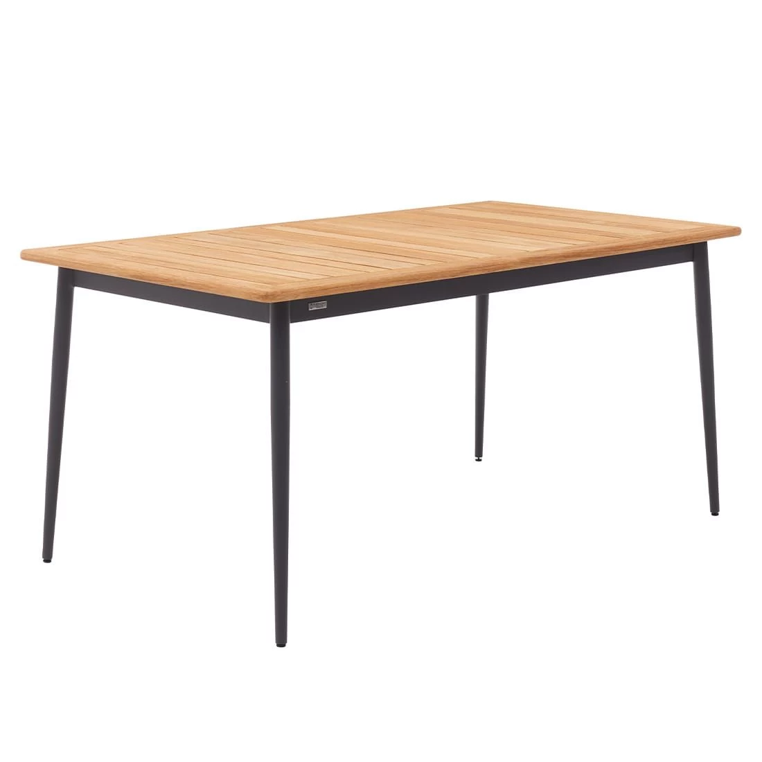 Als Gestellmaterial dient modisches Aluminium. Als klassische Design-Komponente fungiert das geradlinige Vierfußgestell. Teak ist besonders widerstandsfähig gegen Witterungseinflüsse wie Temperaturschwankungen, Nässe und Trockenheit. Kein Wunder, dass für den Gartentisch 7001 dieses hochwertige Holz als Material für die Tischplatte ausgesucht wurde. Farblich ist die Tischplatte in einem schönen Natur gehalten. Der Gartentisch ist klassisch rechteckig gestaltet.