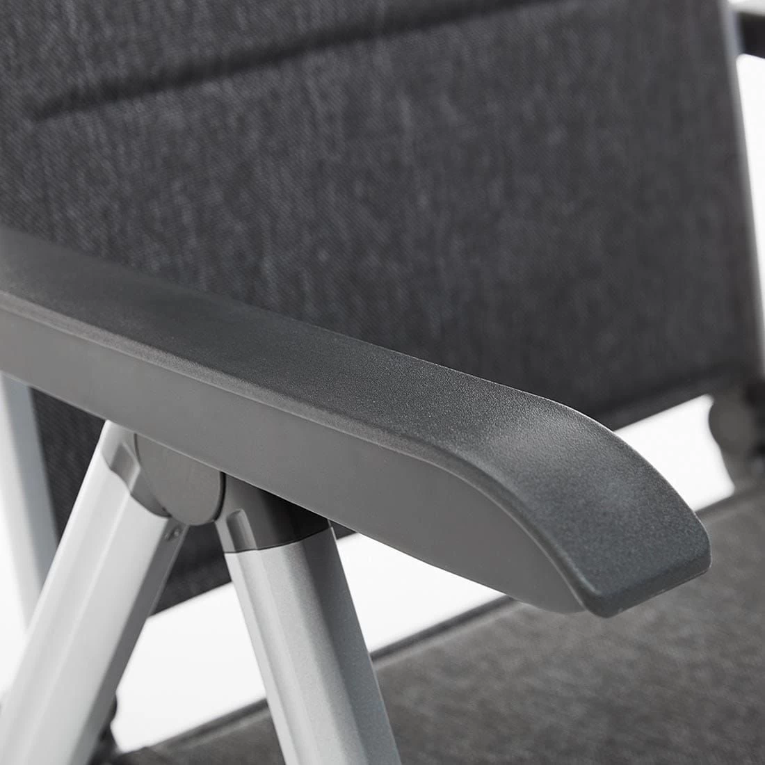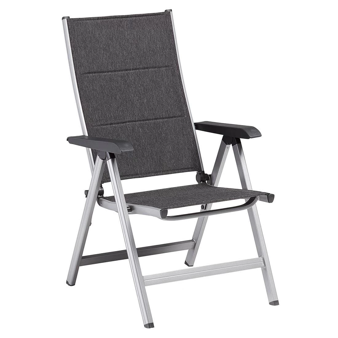 Für die Herstellung des Gestells wird hochwertiges und wetterfestes Aluminium verwendet. Für eine attraktive Optik ist das Gestell im Farbton Silber gehalten. Ein weiteres Highlight des Klappsessels ist die Bespannung mit Textilene. Dieser Bezugsstoff überzeugt durch eine hohe Robustheit gegenüber Hitze und Frost und ist leicht zu reinigen. Die Sitzfläche hat eine attraktive Farbgebung in Anthrazit-Meliert.