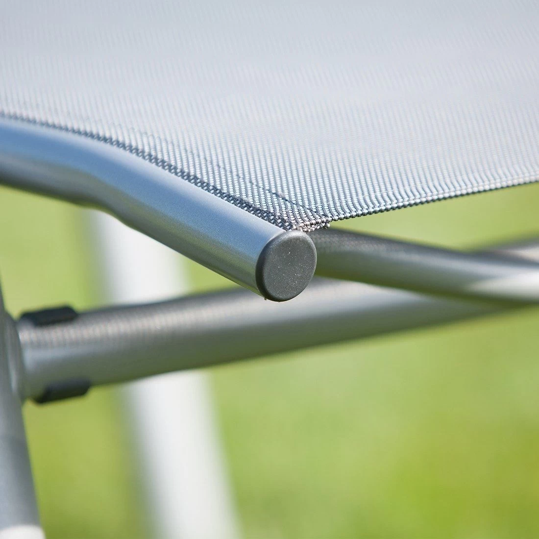 Für die Herstellung des Gestells wird hochwertiges und wetterfestes Aluminium verwendet. Für eine attraktive Optik ist das Gestell im Farbton Silber gehalten. Für die Bespannung der Sitzfläche wird hochwertiges Textilene verwendet. Es zeichnet sich durch eine hohe Robustheit gegenüber Hitze und Frost aus und ist leicht zu reinigen. Die Sitzfläche ist in ansprechendem Anthrazitgrau gehalten.