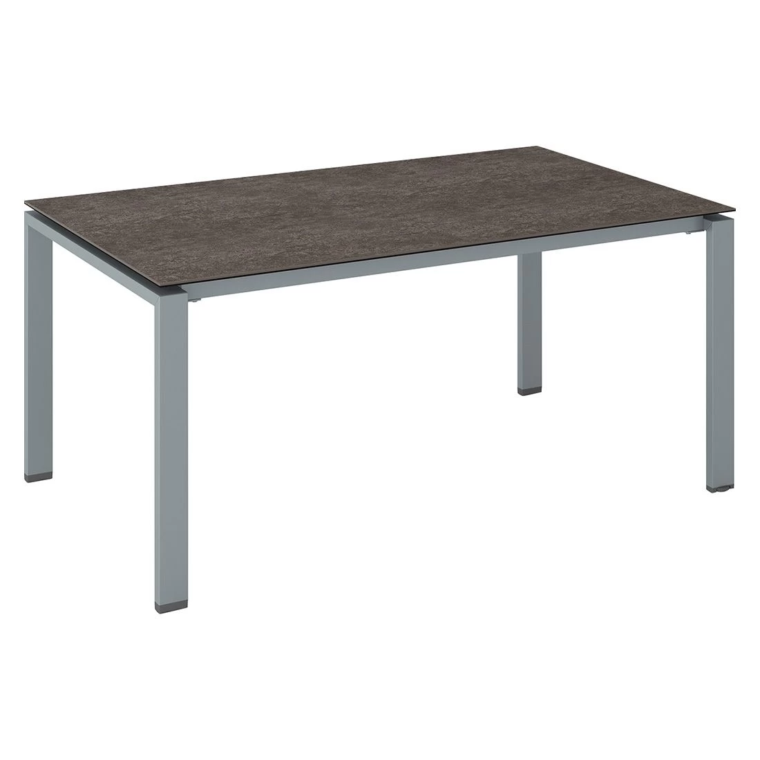 Als Material des Gestells dient modisches Aluminium. Farblich ist das Gestell in Silber gehalten. Die Tischplatte wird aus robustem Glas gefertigt. Farblich ist die Platte in Grau-Taupe gehalten. Als klassische Design-Komponente fungiert das geradlinige Vierfußgestell. Mit der rechteckigen Form lässt sich der Gartentisch platzsparend in Ecken oder an Häuserwänden aufstellen.