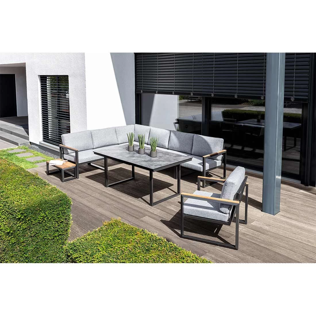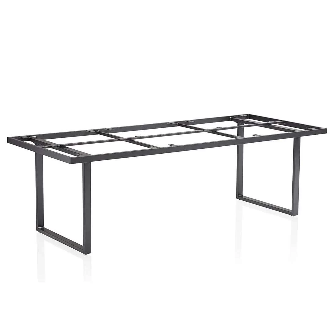 Mit seinem Gestell-Material Aluminium zählt das Tischgestell Skate zu den modernen Tischmodellen, die sich im Garten ganz einfach aufstellen und bewegen lassen. Farblich ist das Gestell in Anthrazit gehalten.