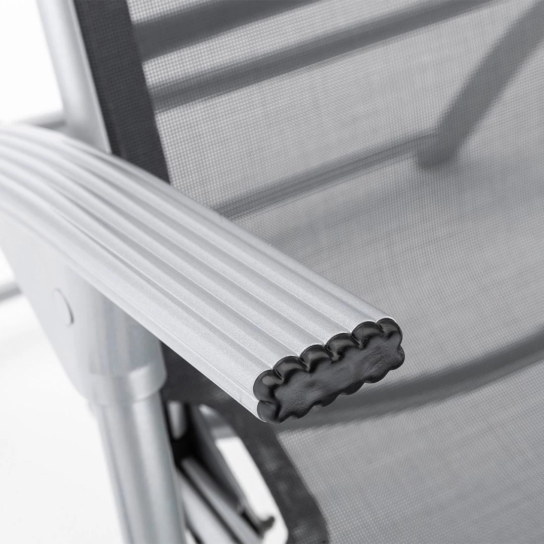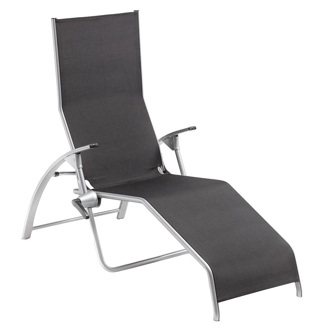 Das Gestell besteht aus pflegeleichtem und wetterfestem Aluminium. Farblich ist dieses in Silber gehalten. Für die Bespannung der Sitzfläche wird hochwertiges Textilene verwendet. Es zeichnet sich durch eine hohe Robustheit gegenüber Hitze und Frost aus und ist leicht zu reinigen. Die Sitzfläche ist in ansprechendem Charcoal gehalten.