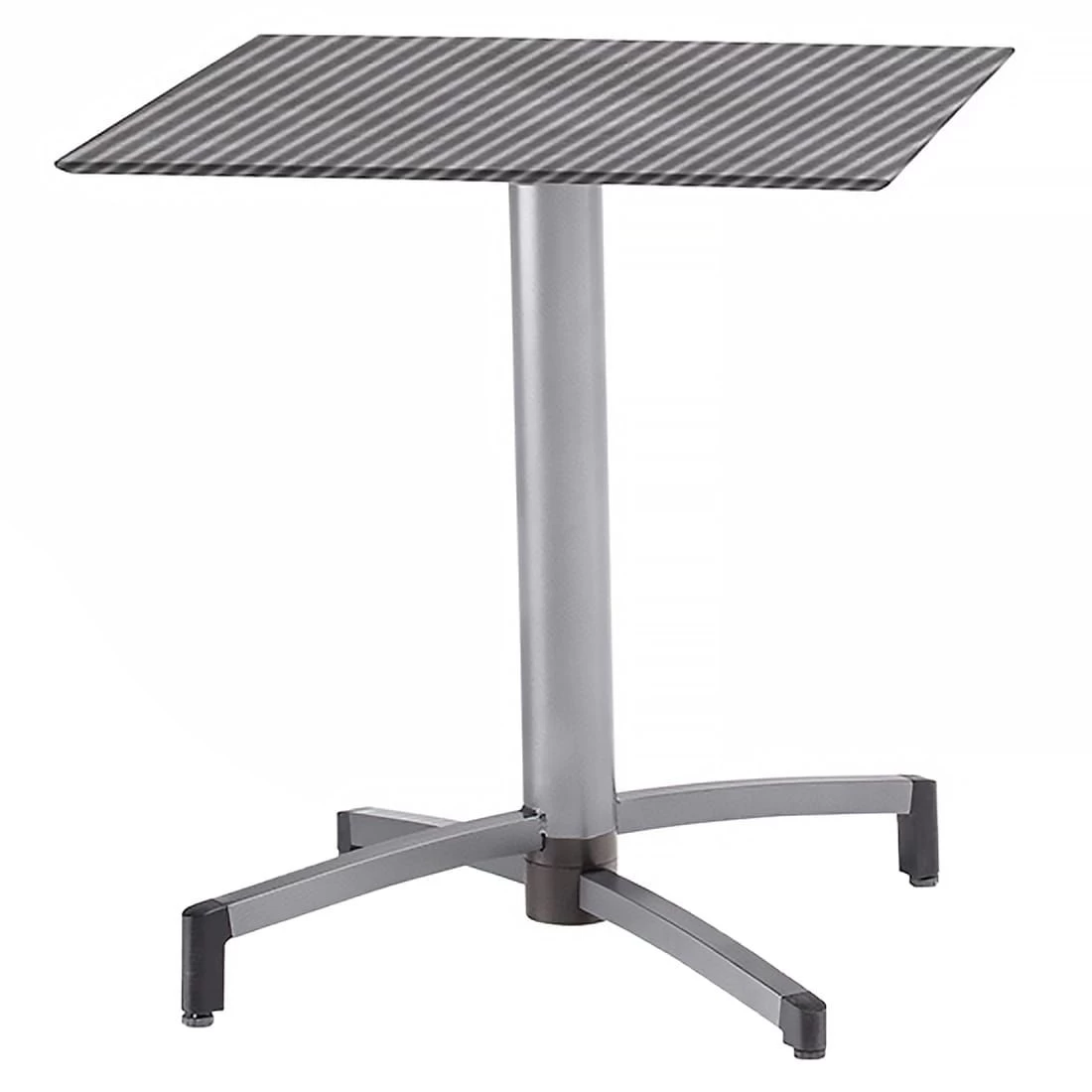 Das Gestell des attraktiven Tisches ist aus Aluminium hergestellt. Farblich ist das Gestell in Silber gehalten.