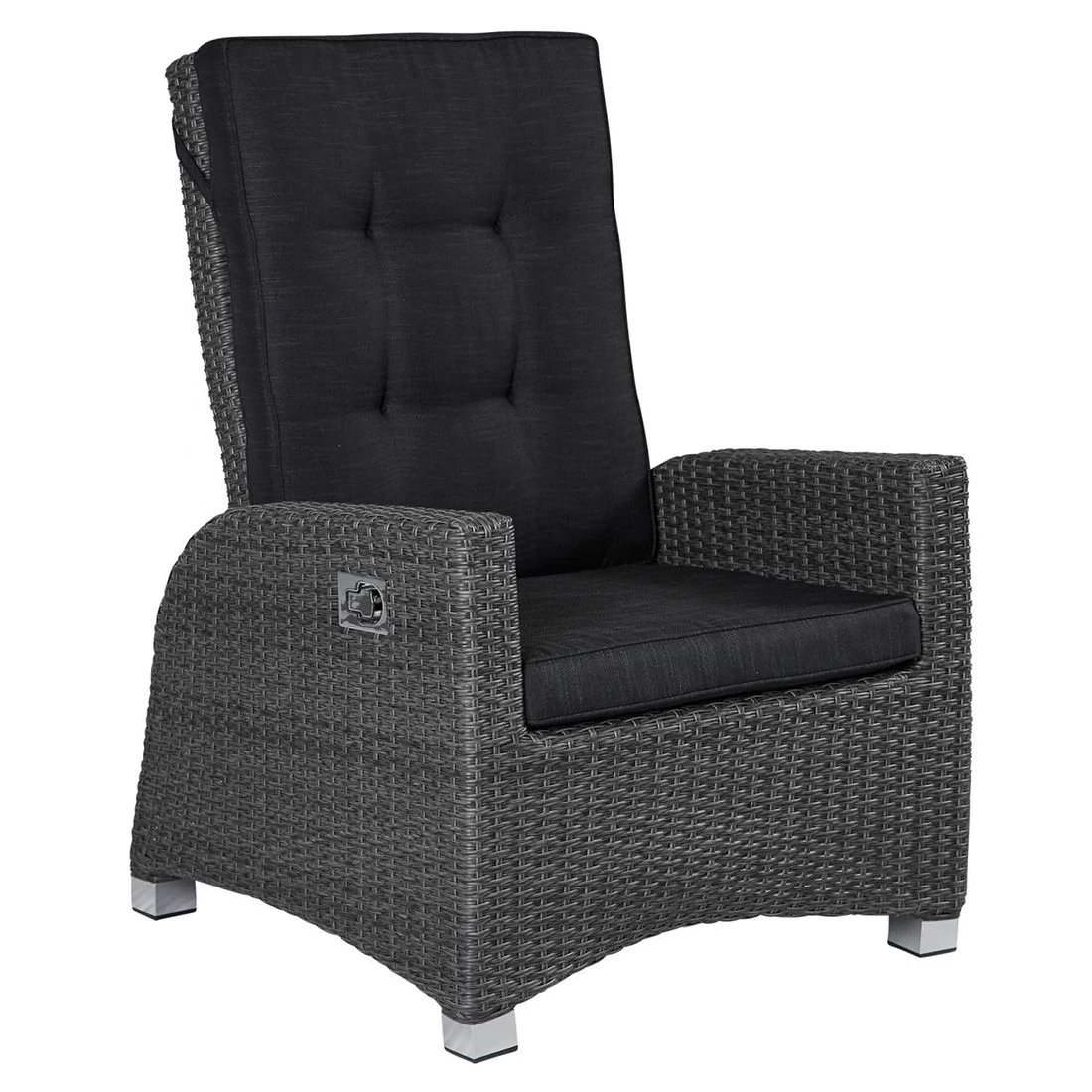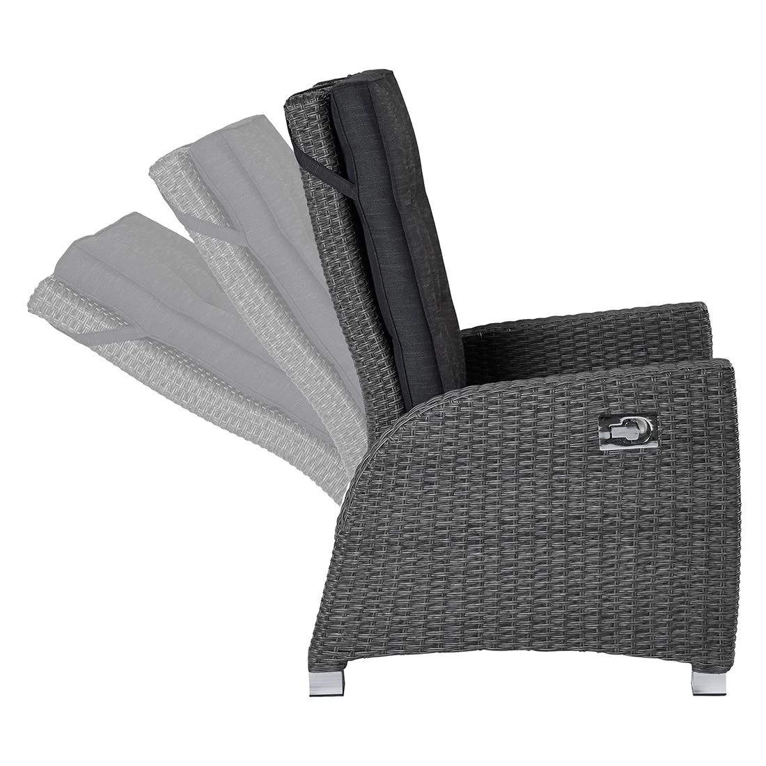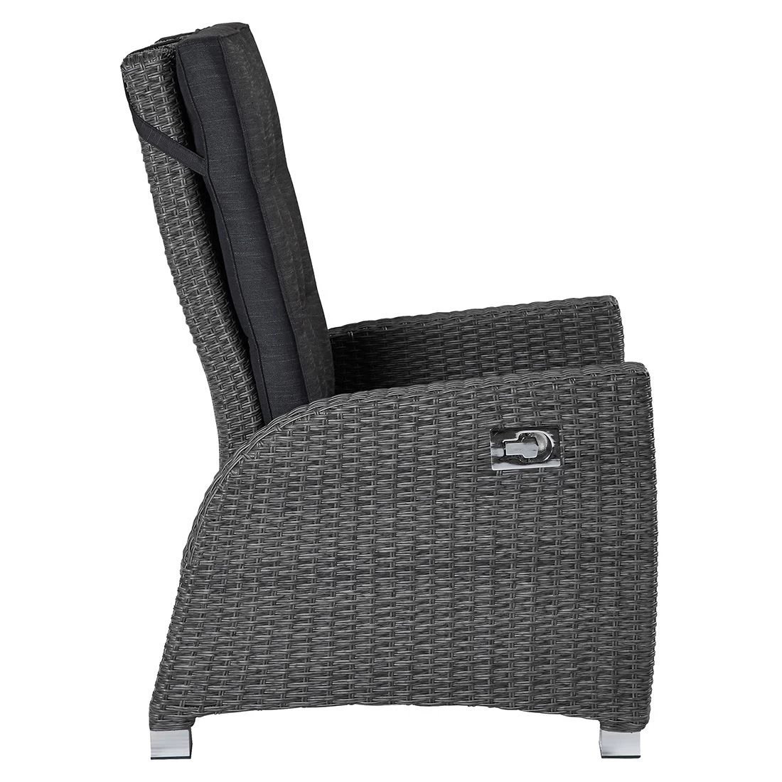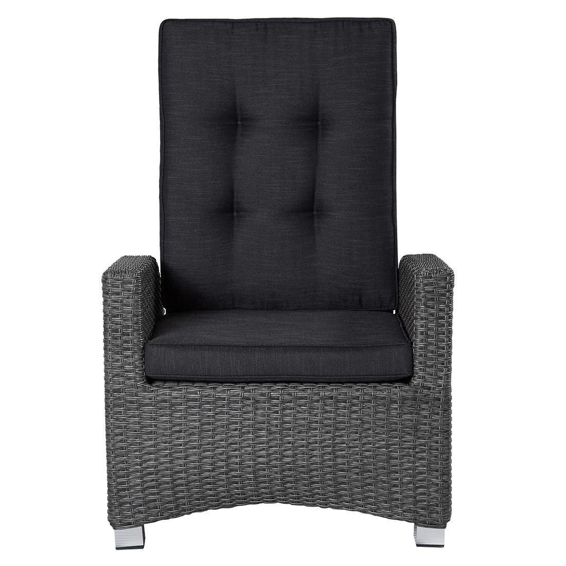 Der Korpus und die Sitzfläche bestehen aus Polyrattan-Geflecht. Für die Herstellung des Gestells wird hochwertiges und wetterfestes Aluminium verwendet. Als hochwertiges Material für den Bezug kommt ein Polyester-Stoff zum Einsatz. Er ist sehr strapazierfähig und bietet somit die idealen Voraussetzungen für den Einsatz im Freien. Damit der Gartensessel optisch ansprechend ist, sind die Sitzfläche und der Bezug im Farbton Schwarz gehalten.