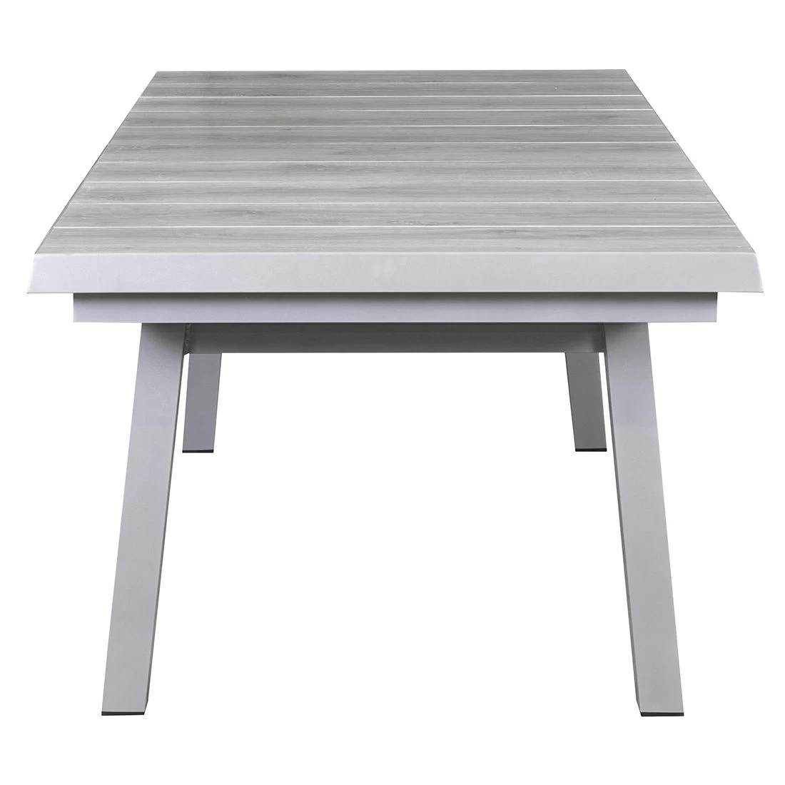 Als Gestellmaterial dient modisches Aluminium. Optisch ist das Gestell in Silber gehalten. Die Tischplatte ist aus wertigem Keramik gefertigt. Im Gegensatz zu vielen anderen Tischplattenmaterialien sind Keramikplatten äußerst kälte- und hitzebeständig und zählen somit zu den robustesten Tischplatten auf dem Markt. Farblich ist die Tischplatte in einem schönen Easy Grey gehalten. Klassisch aus vier Tischbeinen besteht das Gestell des Tisches. Mit der rechteckigen Form lässt sich der Gartentisch platzsparend in Ecken oder an Häuserwänden aufstellen.