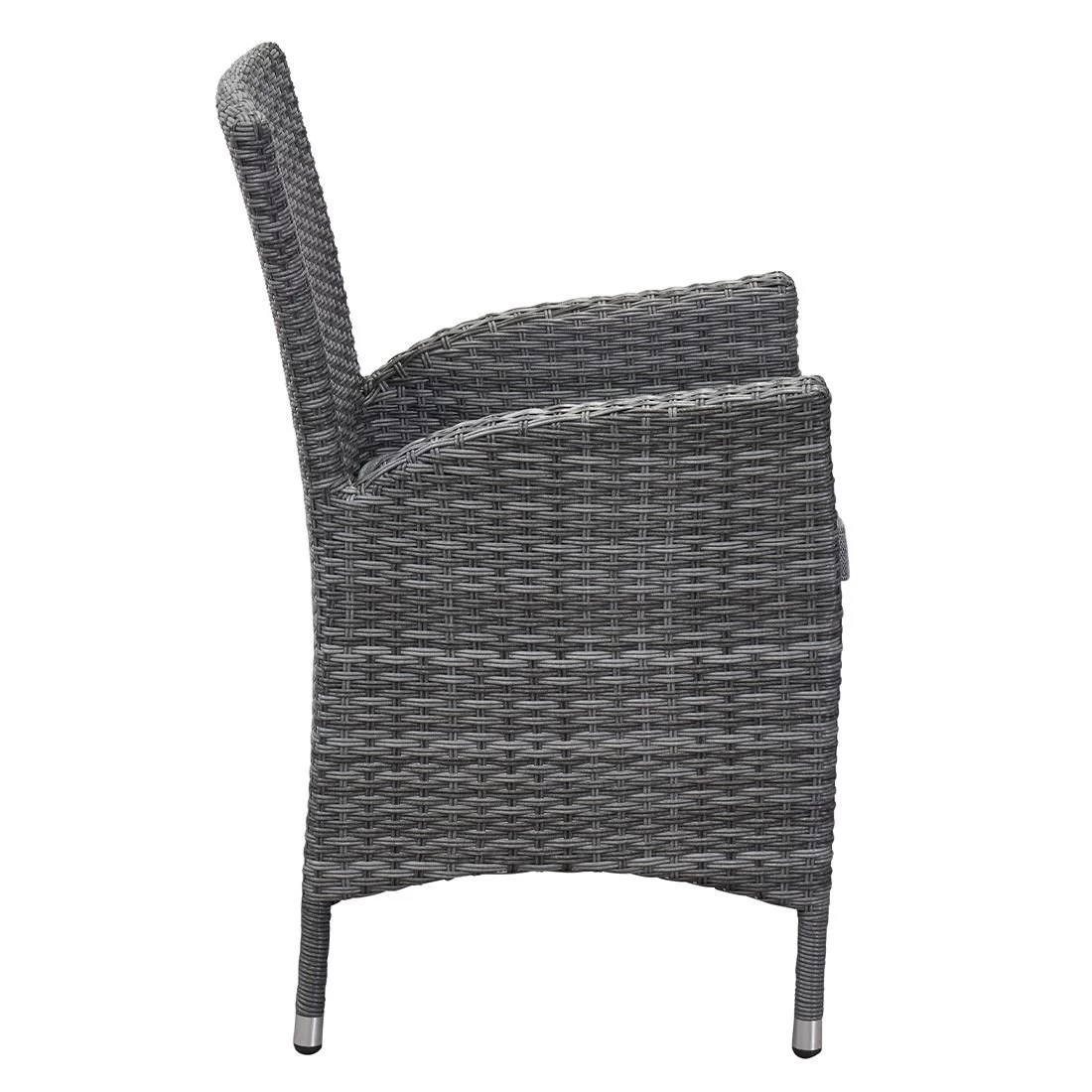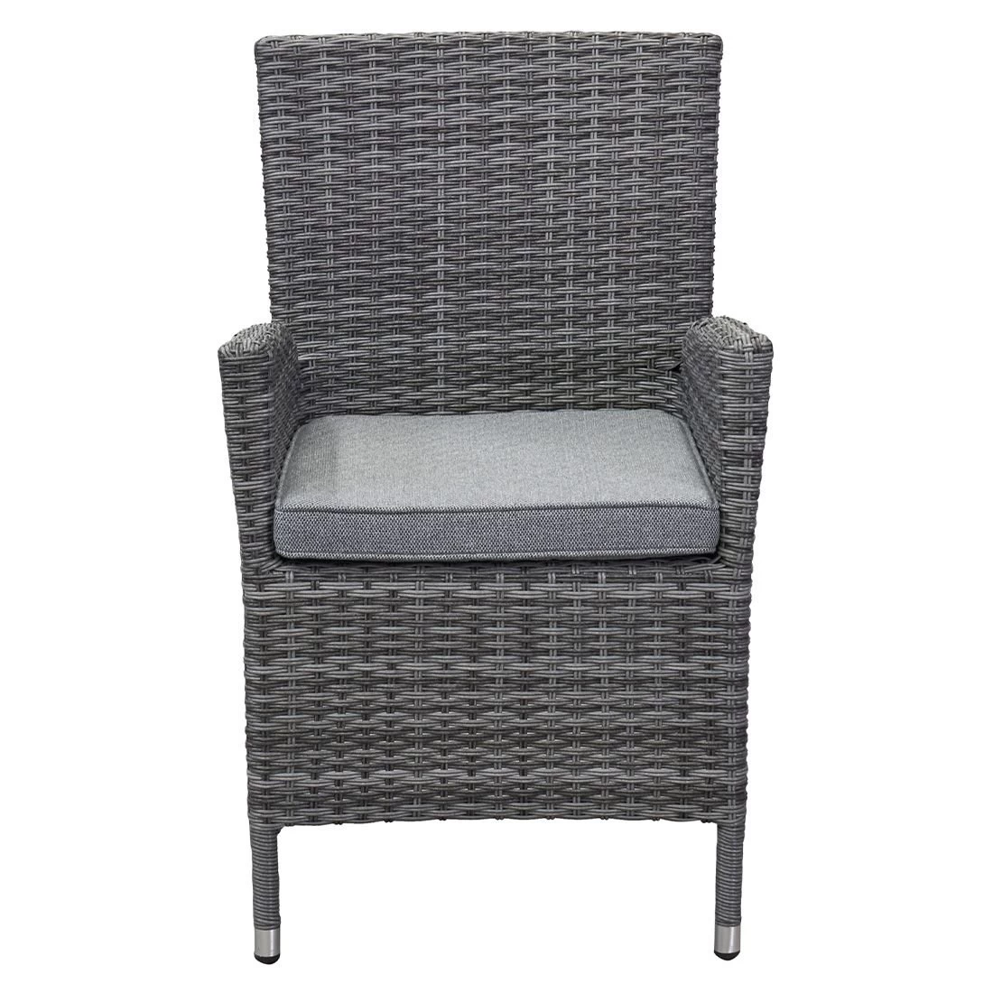 Für die Herstellung des Gestells wird hochwertiges und wetterfestes Aluminium verwendet. Für eine attraktive Optik ist das Gestell im Farbton Silber gehalten. Die Sitzfläche des Gartensessels besteht aus qualitativ hochwertigem Polyrattan. Ein Material, das sich durch seine lange Haltbarkeit auszeichnet. Die Sitzfläche hat eine elegante Farbgebung in Omega-Anthrazit. Als hochwertiges Material für den Bezug kommt ein Polyester-Stoff zum Einsatz. Er ist sehr strapazierfähig und bietet somit die idealen Voraussetzungen für den Einsatz im Freien. Farblich begeistert der Bezug in elegantem Salz & Pfeffer.