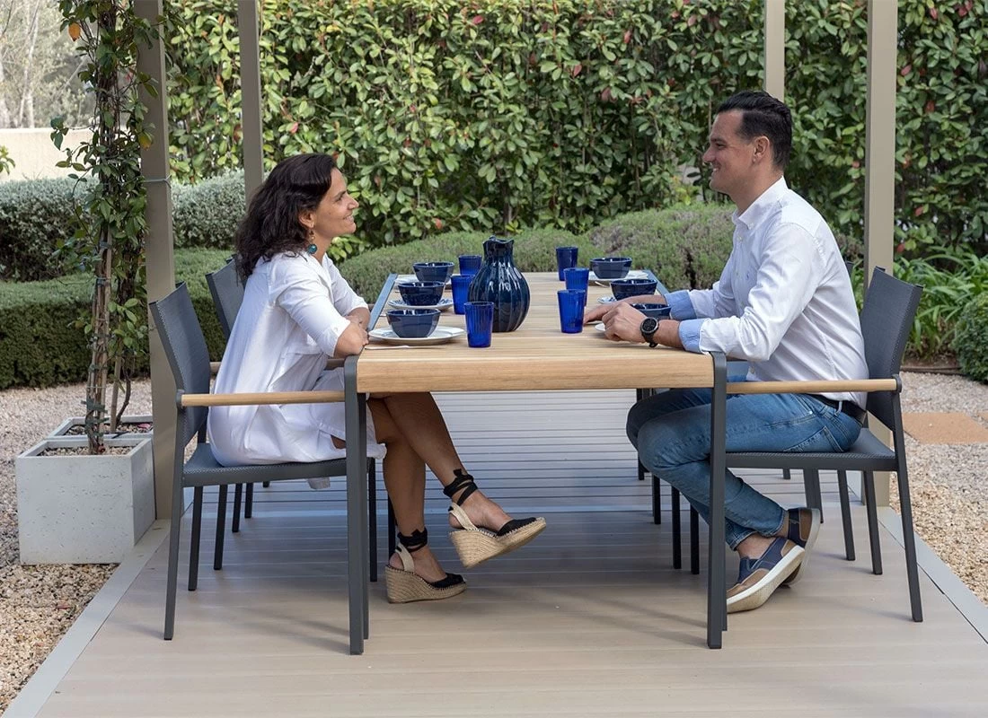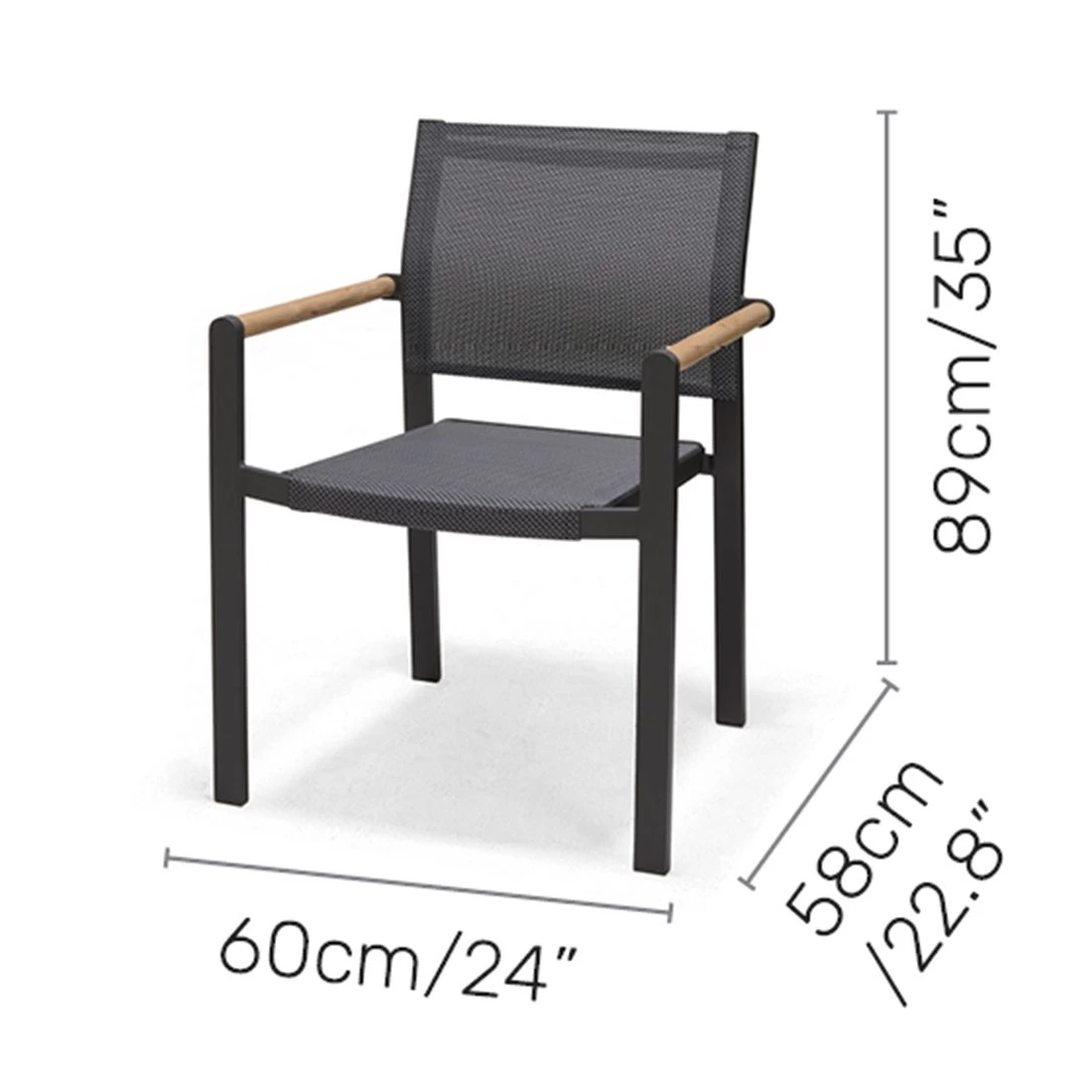 Ein weiteres Highlight des Stapelsessels ist die Bespannung mit Textilene in der Farbe Grau Meliert. Dieser Bezugsstoff überzeugt durch eine hohe Robustheit gegenüber Hitze und Frost aus und ist leicht zu reinigen. Unser Tipp: Wenn Sie mehrere Exemplare des Modells Amber besitzen, können Sie diese äußerst kompakt und platzsparend aufbewahren, indem Sie diese stapeln.