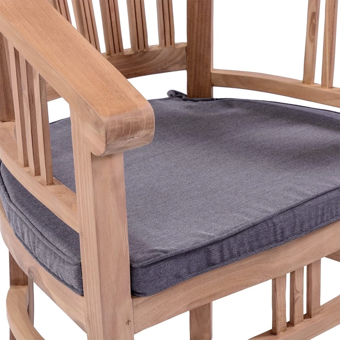 Das Gestell und die Sitzfläche bestehen aus Teakholz. Für ein perfekt stimmiges Gesamtbild sorgt die einheitliche Farbgebung in stilvollem Eco Teak.