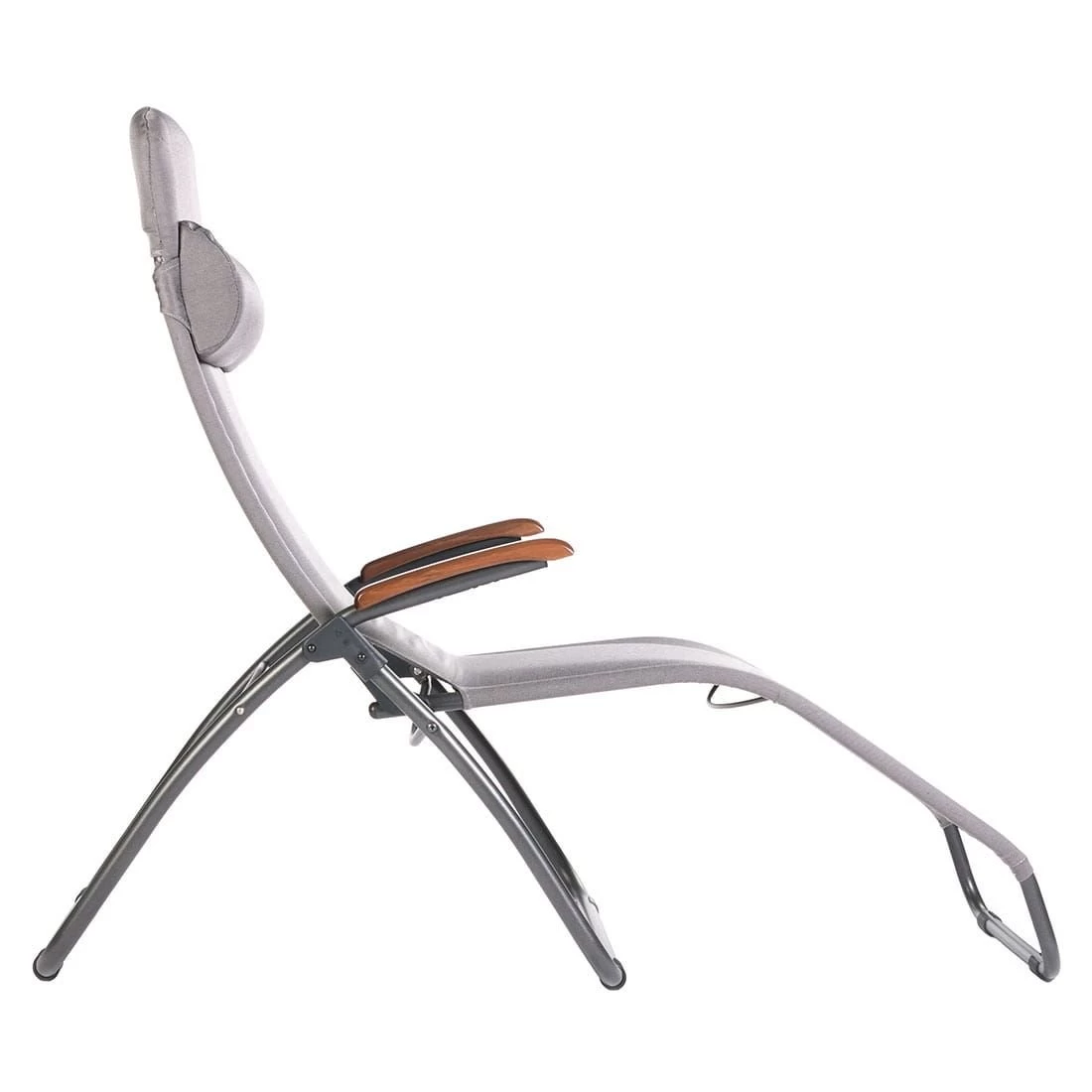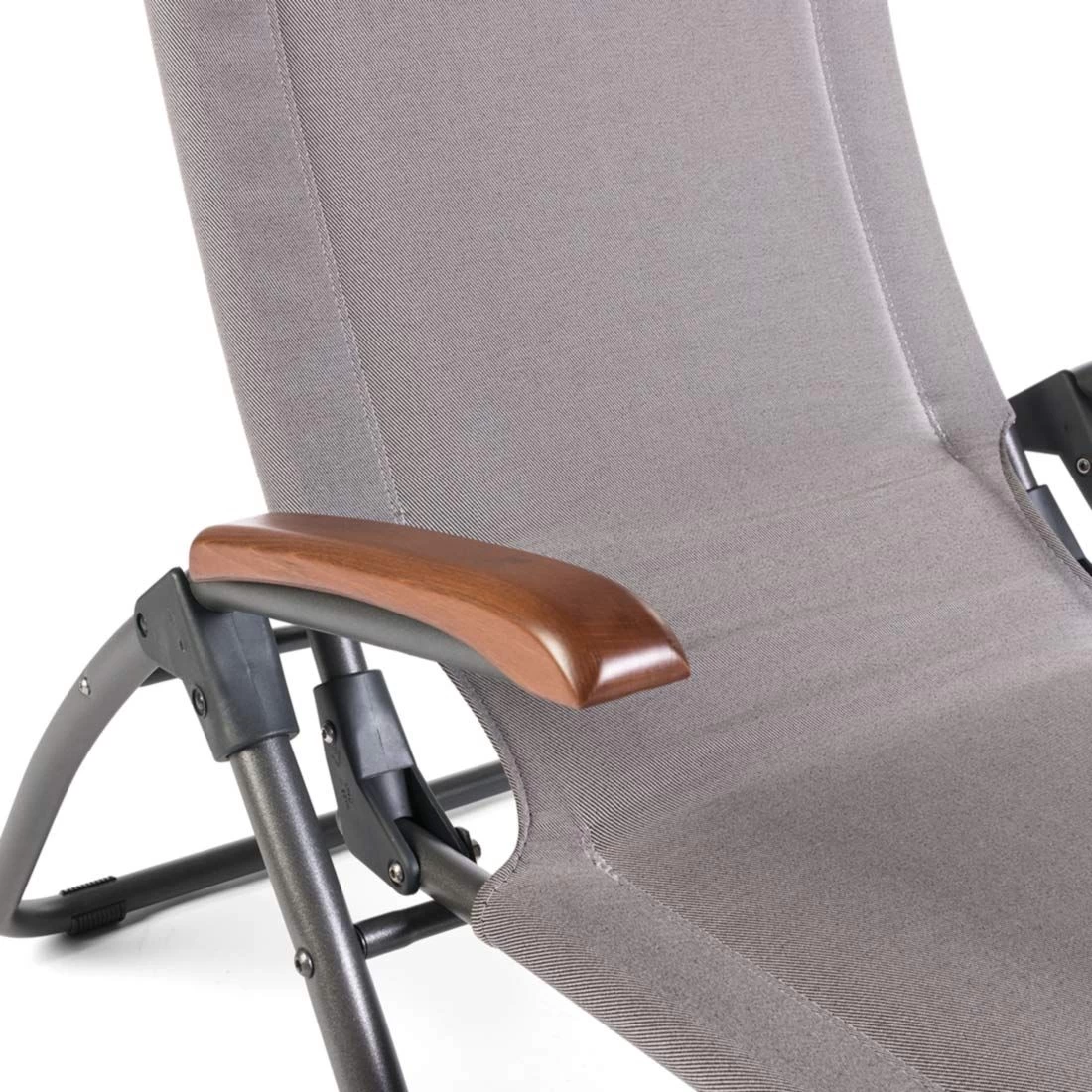 Das Gestell besteht aus pflegeleichtem und wetterfestem Aluminium in der Farbe Anthrazit. Die Sitzfläche der Bäderliege wird mit Olefin bespannt.
