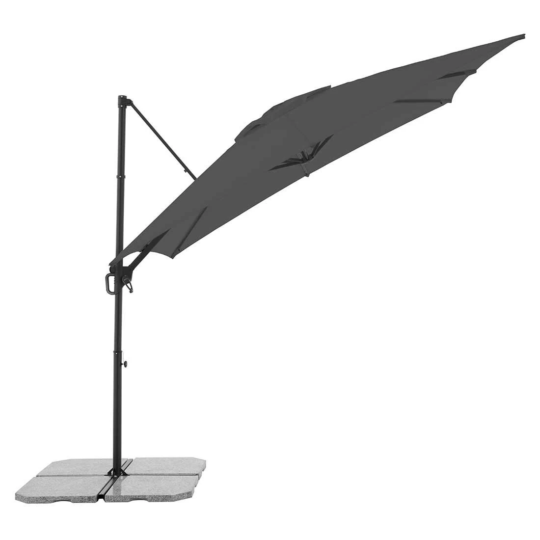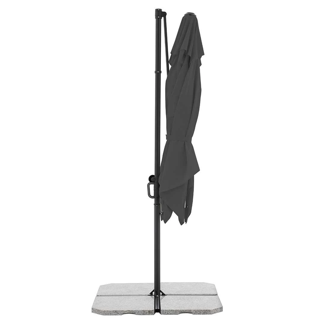 Der handliche und platzsparende Ampelschirm wird inkl. Ständerkreuz (ohne Platten) angeliefert. Der Schirm verfügt über einen guten Lichtschutzfaktor von LSF 50+. Das Schirmdach lässt sich in Richtung Mast aufstellen. Der Schirm ist drehbar und kann somit immer wieder an den aktuellen Sonnenstand angepasst werden.
