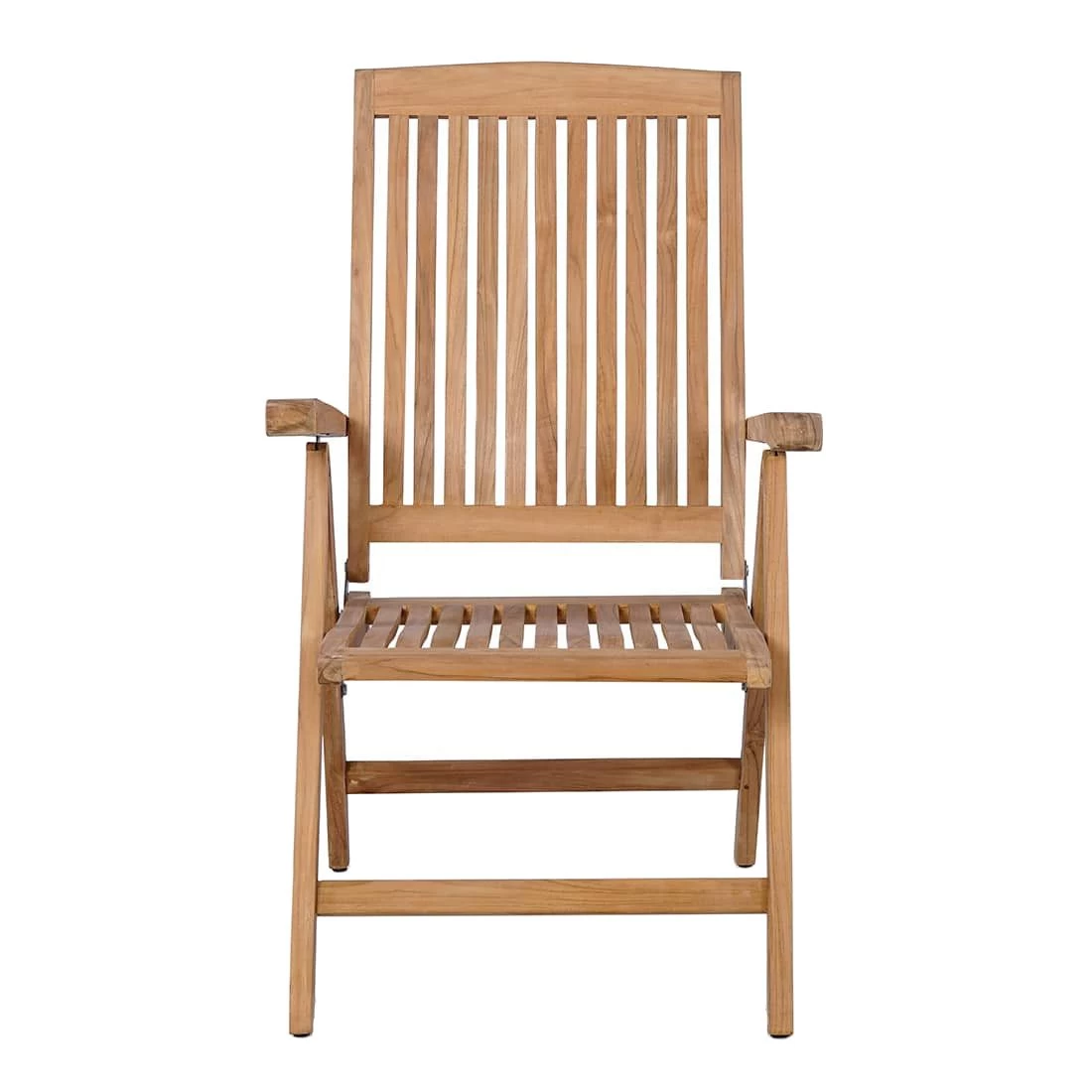 Der Klappsessel ist vollständig aus Teakholz gefertigt. Dies erzeugt nicht nur ein robustes, sondern auch einheitliches Bild des attraktiven Sitzmöbels. Die Klappbarkeit ermöglicht es, den Klappsessel bei Nicht-Benutzung oder im Winter kompakt einzulagern.
