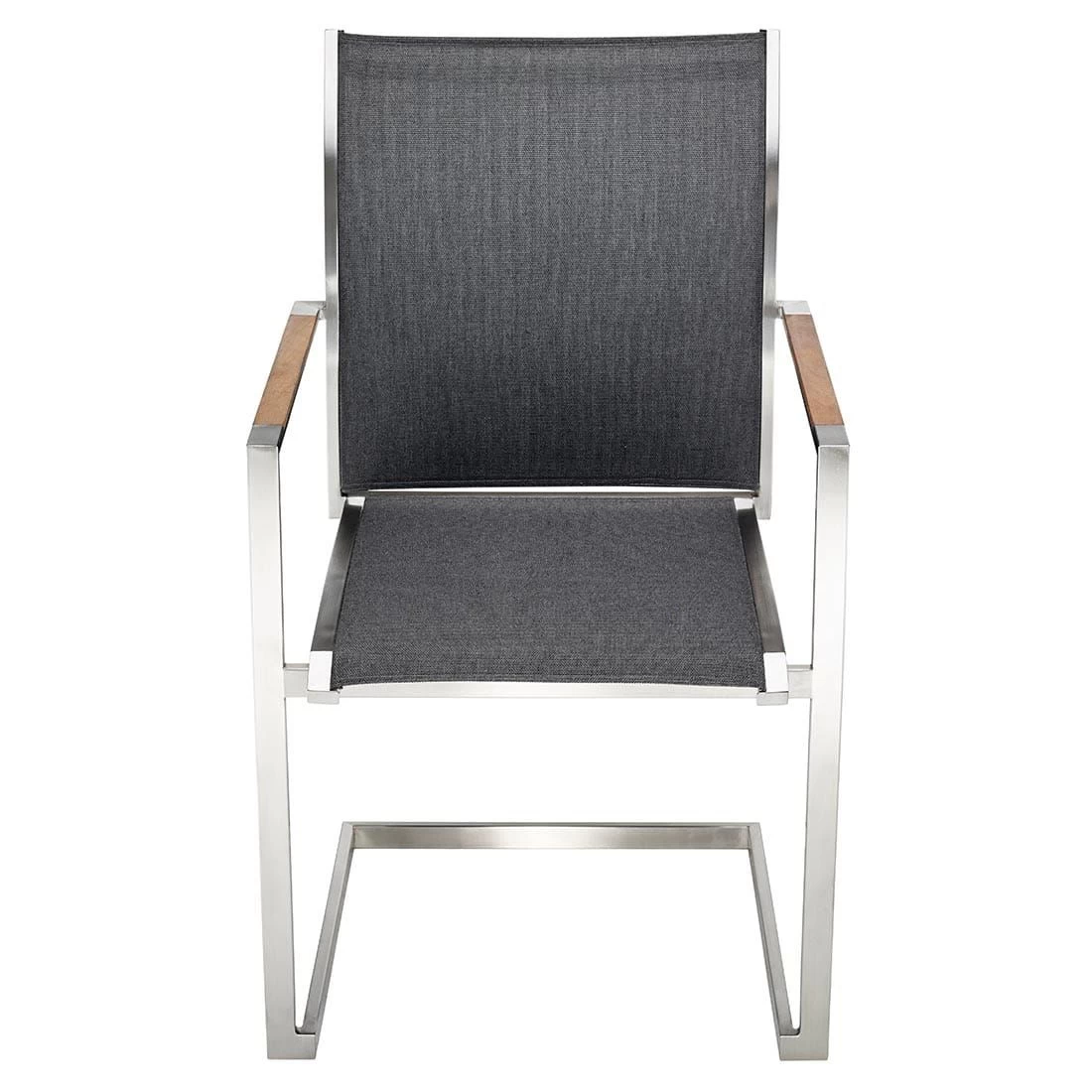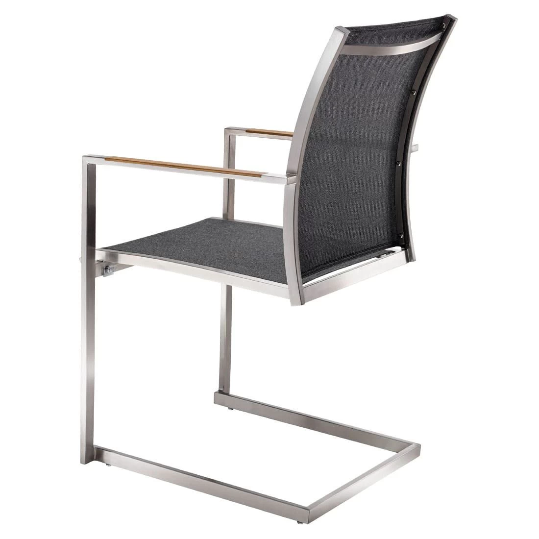 Das Gestell wird aus hochwertigem und rostfreiem Edelstahl hergestellt. Aufgrund des etwas höheren Eigengewichts, steht der Freischwinger dadurch besonders stabil und windsicher auf der Terrasse.