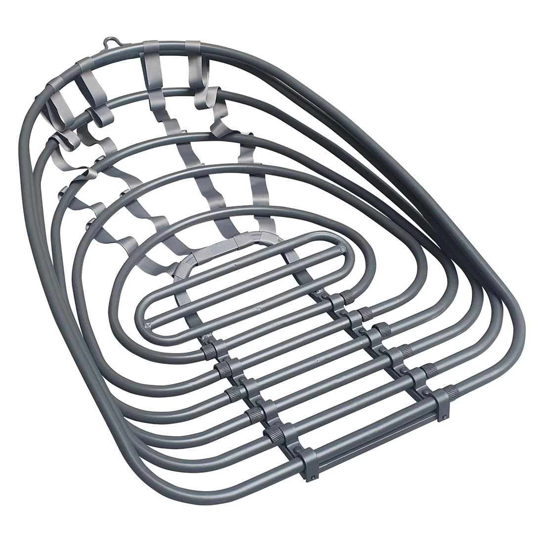 Das Gestell wird aus robustem Stahl in der Farbe Royal Grey gefertigt.