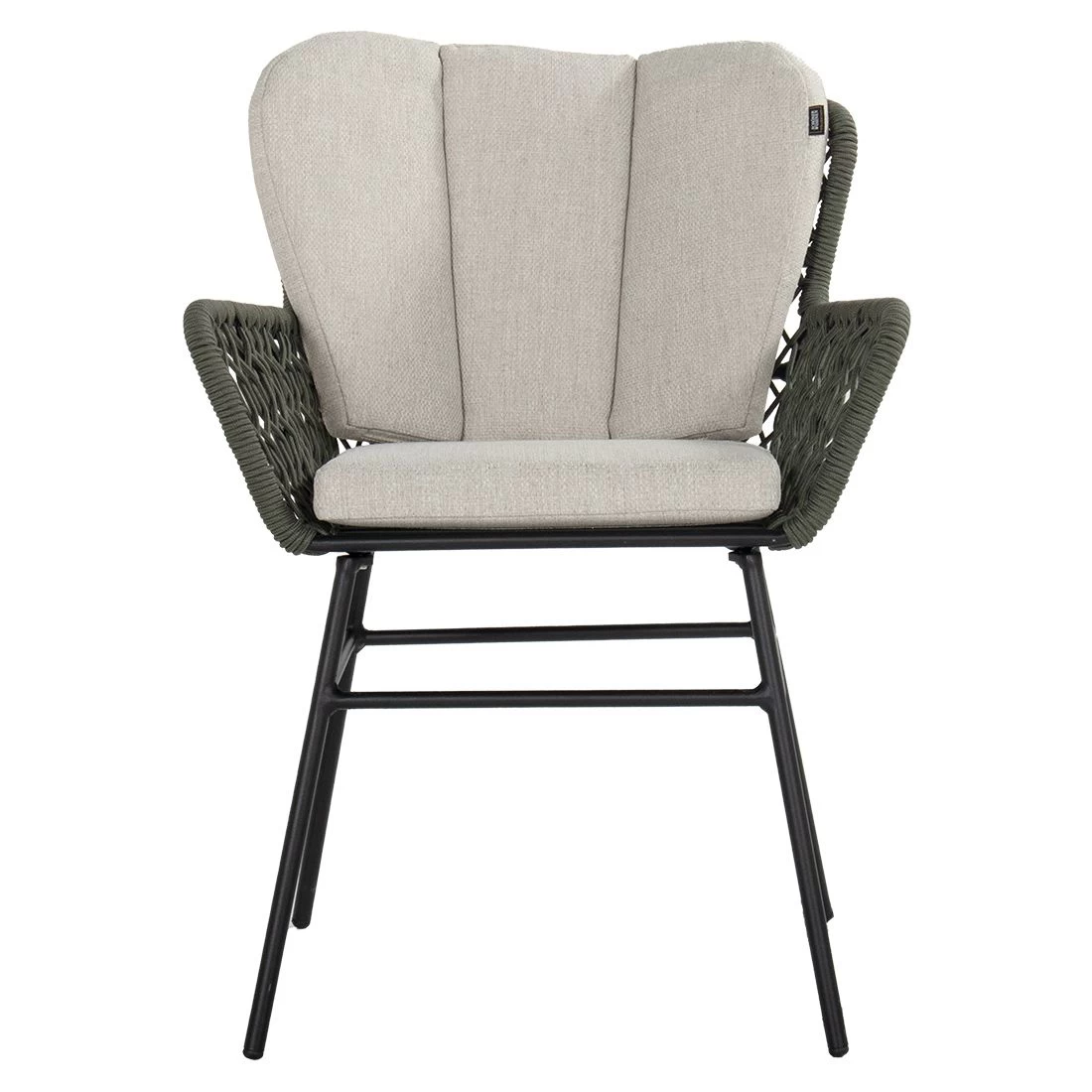 Die Sitzfläche wird aus moderner Rope-Bespannung gefertigt. Die Bezüge sind aus dem Marken-Outdoorstoff Olefin gefertigt. Das Material verbindet eine angenehme Stoffoberfläche mit hoher Witterungsbeständigkeit. Denn sowohl Sonne als auch Regen können dem robusten Outdoor-Stoff kaum etwas anhaben. Der Gartensessel ist zudem überdurchschnittlich stark belastbar (bis 130 kg) und somit äußerst robust. Die Sitzfläche bietet Ihnen mit 46 cm Höhe und einer Breite von 42 cm optimalen Komfort.