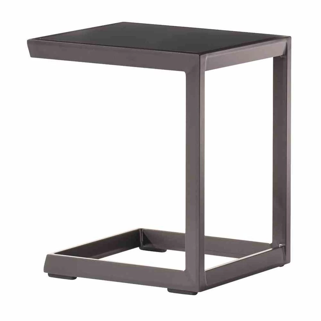 Das Gestell des tragbaren Tisches besteht aus Aluminium. Das Gestell besticht mit seinen attraktiven Kufen. Für die Tischplatte wird wetterfestes und pflegeleichtes Aluminium verwendet. Für ein stimmiges Gesamtbild erscheint die Platte in der Farbe Eisengrau (Anthrazit). Die rechteckige Form ermöglicht es Ihnen, den Beistelltisch in Ecken und an Häuserwänden platzsparend einzusetzen.