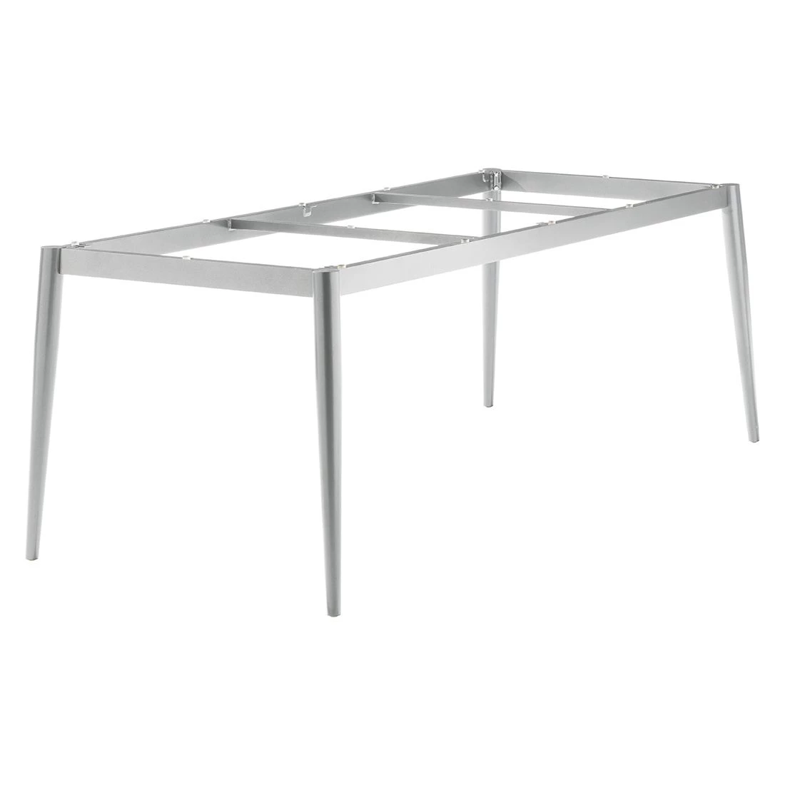 Dank des Gestell-Materials Aluminium zählt das Tischgestell zu den modernen Tischmodellen, die sich im Garten und auf der Terrasse ohne Aufwand aufstellen und bewegen lassen.
