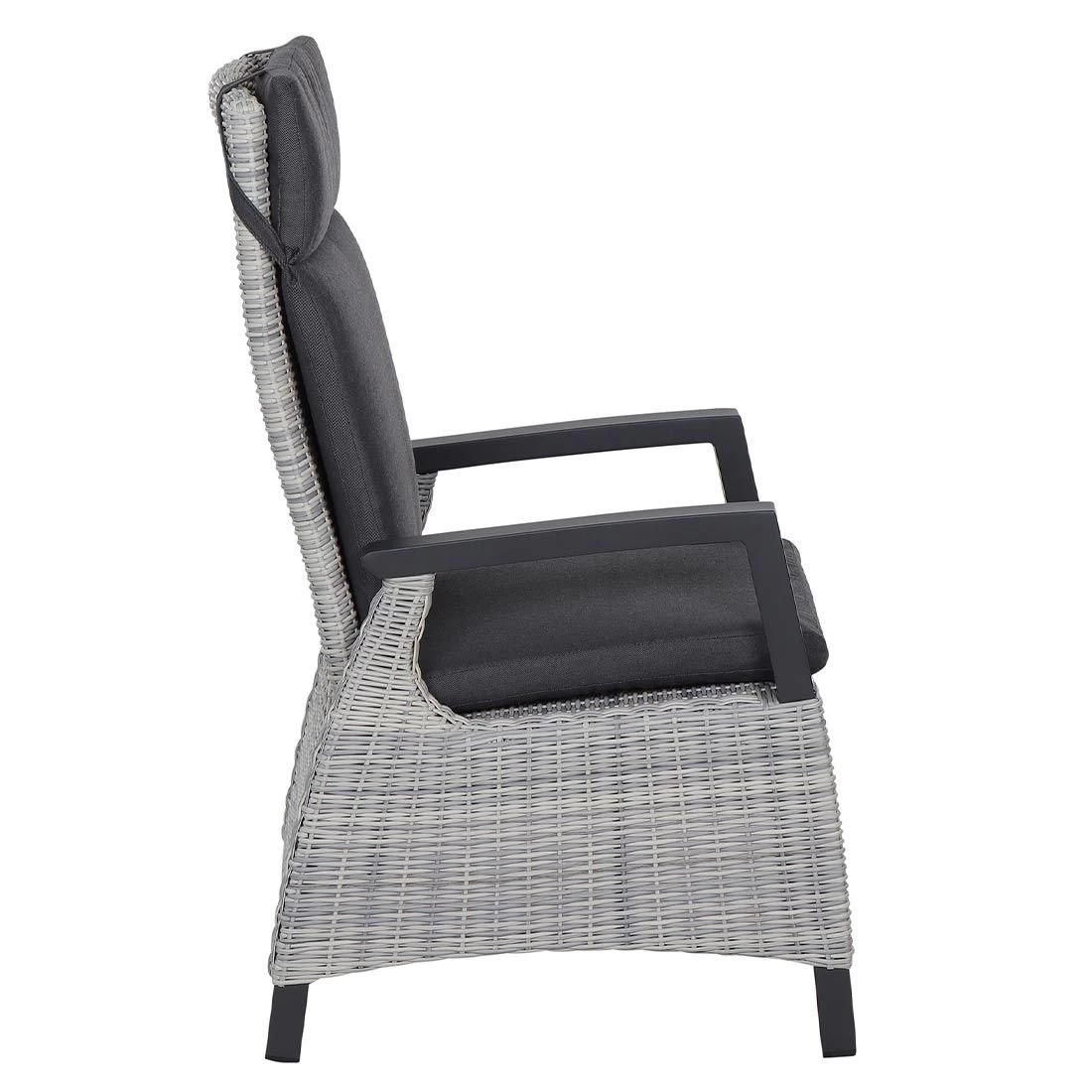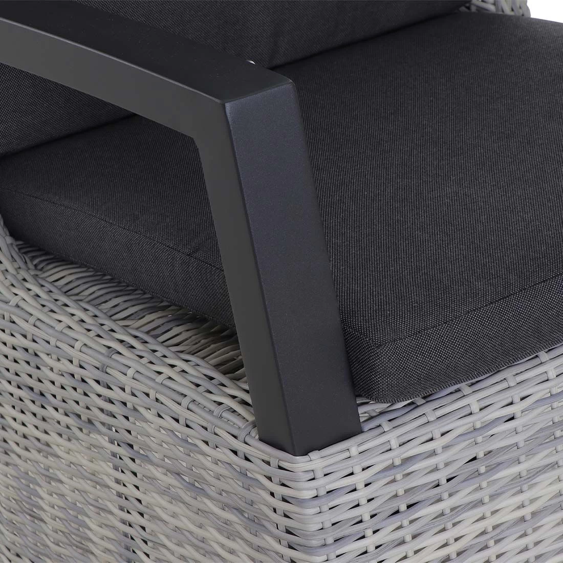 Der Korpus und die Sitzfläche bestehen aus Gardino®-Geflecht. Damit der Gartensessel optisch ansprechend ist, sind der Korpus und die Sitzfläche im Farbton Ice Grey gehalten. Gestell und Bezug begeistern hingegen in Ice Grey.
