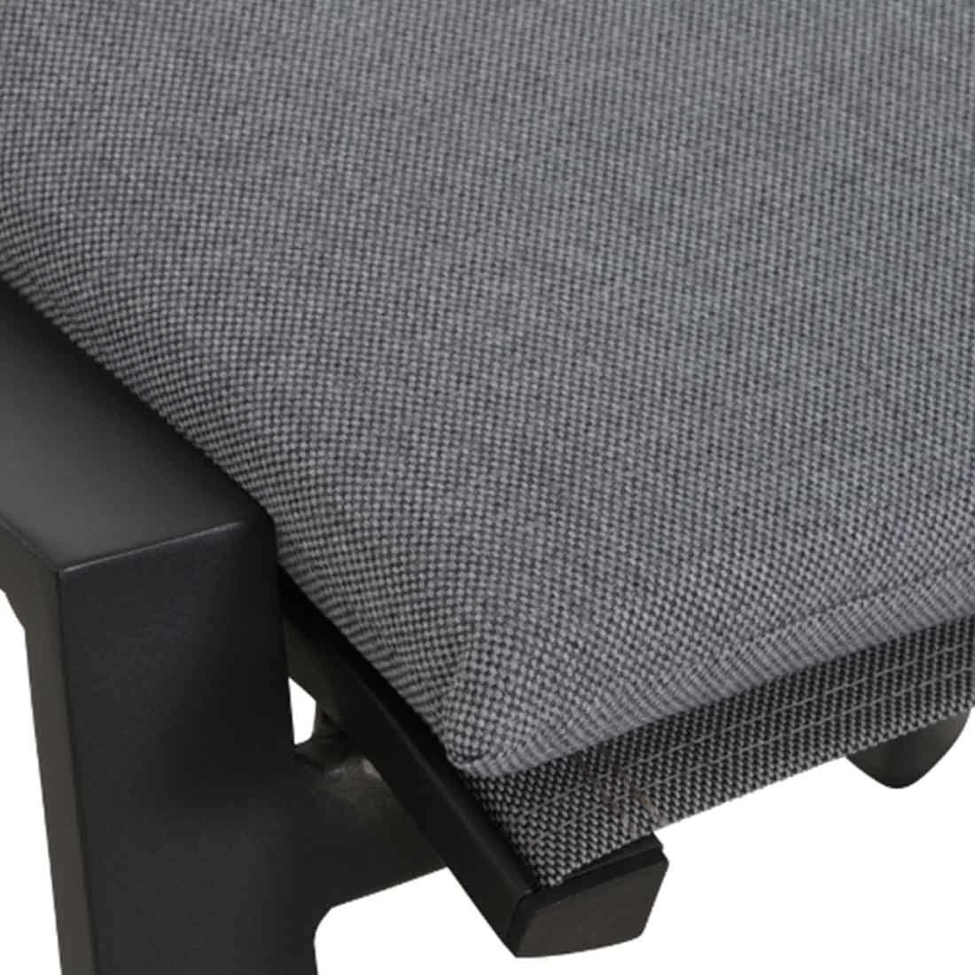Das Gestell wird aus Aluminium in der Farbe Anthrazit gefertigt. Das geringe Eigengewicht des Materials macht den Gartenhocker zu einem robusten, aber dennoch leicht zu transportierenden Sitzmöbel auf Ihrer Terrasse.