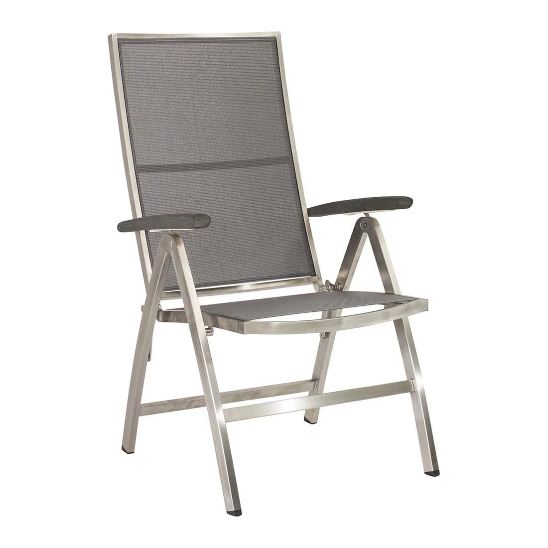 Das Gestell des Klappsessels besteht aus hochwertigem und rostfreiem Edelstahl. Neben seiner ansprechenden Optik bietet dieses Material auch eine hohe Stabilität.