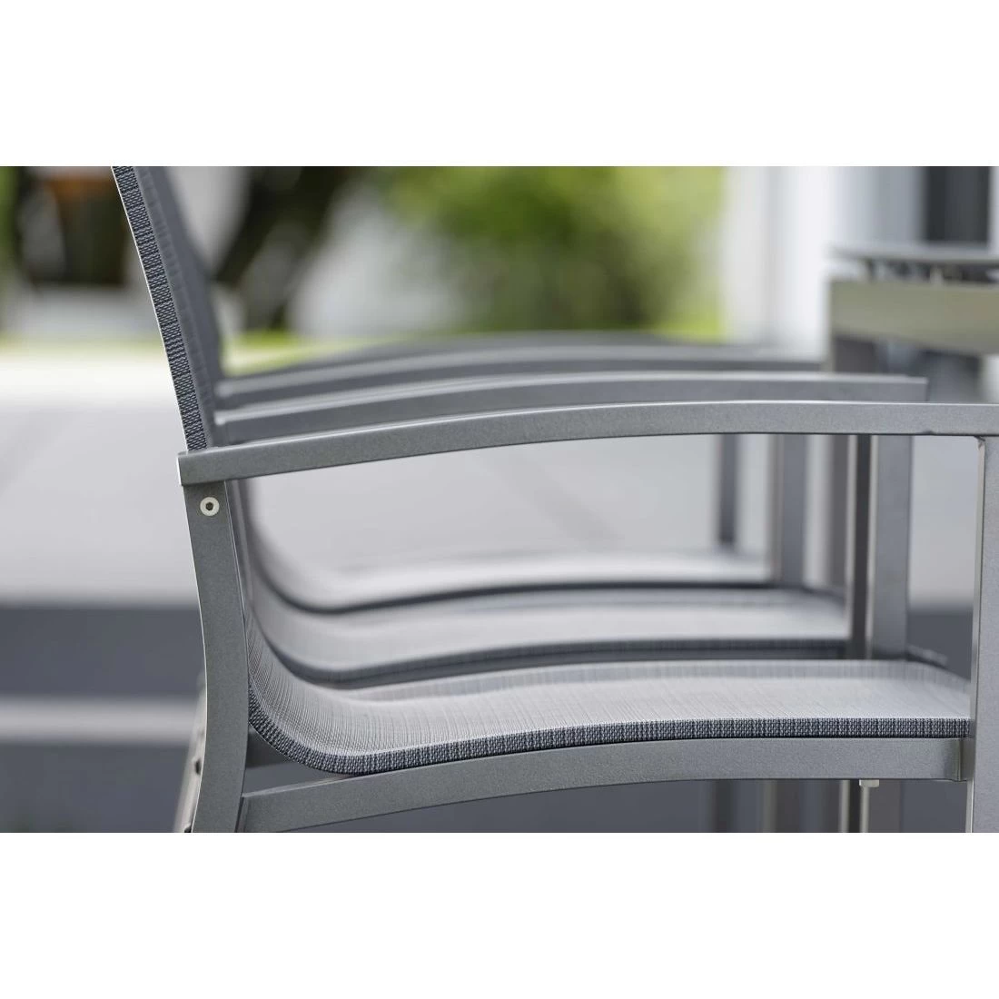 Für die Bespannung der Sitzfläche verlässt sich der Hersteller auf hochwertiges Textilene. Es zeichnet sich durch eine hohe Robustheit gegenüber Hitze und Frost aus und ist leicht zu reinigen. Besonders praktisch: Wenn Sie mehrere Exemplare des Modells Evoee besitzen, können Sie diese äußerst kompakt und platzsparend aufbewahren, indem Sie diese stapeln. Der hohe Sitzkomfort ergibt sich auch aus der Sitzbreite von 42,5 cm und einer Sitztiefe von 47 cm. Unterstützt wird dies zudem durch die bequeme Sitzhöhe von 47 cm.