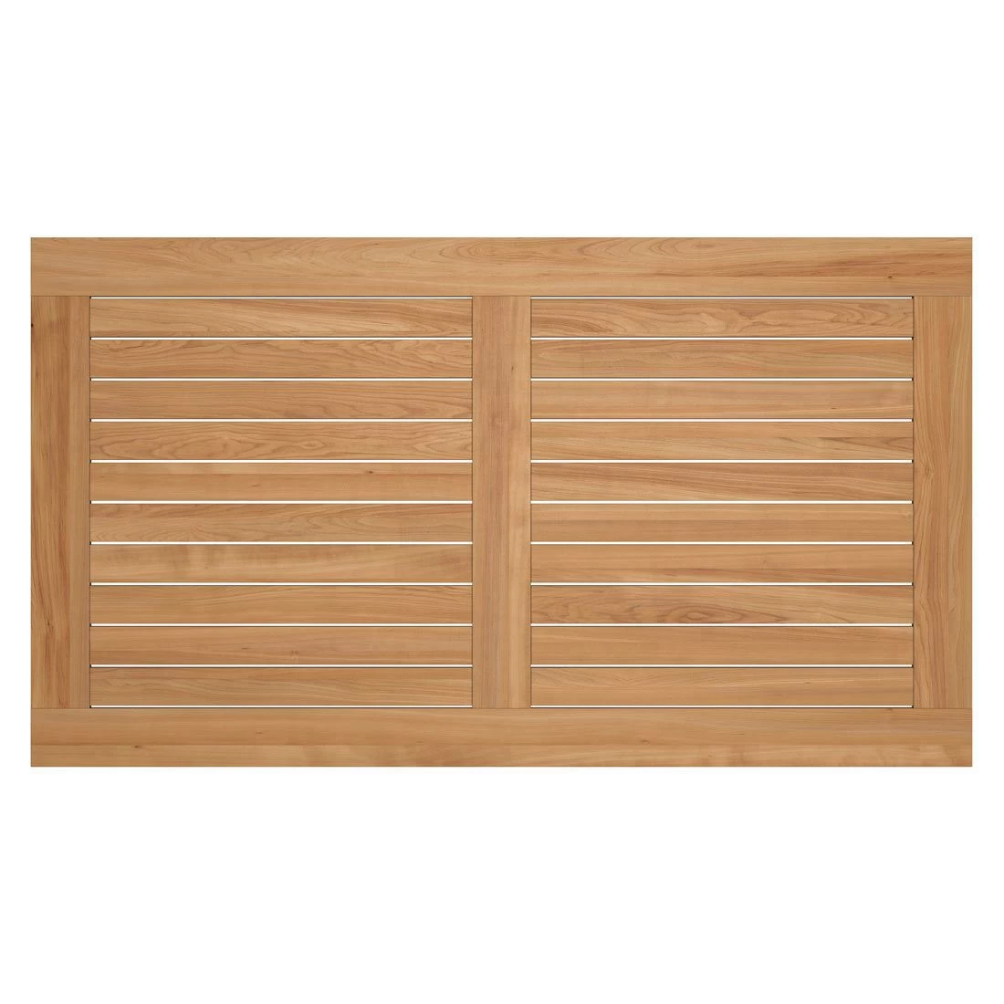 Das Gestell des leichten Tisches ist aus Aluminium hergestellt. Als Material für die Tischplatte wird das wertvolle Hartholz Teak verwendet. Die Maserung des Holzes und der warme Farbton integrieren sich hervorragend in jegliche Arten der Garten- und Balkongestaltung und bescheren eine besonders natürliche Atmosphäre. Farblich ist die Tischplatte in einem schönen Natur gehalten. Die rechteckige Form ermöglicht es Ihnen, den Gartentisch in Ecken und an Häuserwänden platzsparend einzusetzen.