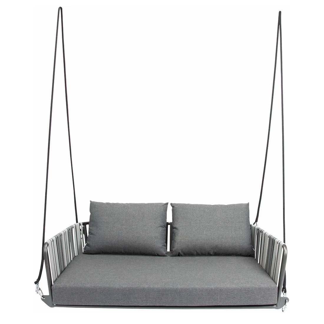 Das Gestell besteht aus pflegeleichtem und wetterfestem Aluminium. Für eine attraktive Optik ist das Gestell im Farbton Anthrazit gehalten. Hochwertiges Rope umgibt das robuste Gestell und verleiht dem Hängesessel damit einen ganz besonderen Look. Die Sitzfläche verfügt über eine angenehme Polsterung. Der Bezug des Hängesessels ist aus Polyacryl gefertigt. Dieses Material begeistert mit einer hohen Witterungsbeständigkeit. Regen kann dem robusten Outdoor-Stoff kaum etwas anhaben. Damit der Hängesessel optisch ansprechend ist, sind die Sitzfläche und der Bezug im Farbton Seidengrau gehalten.