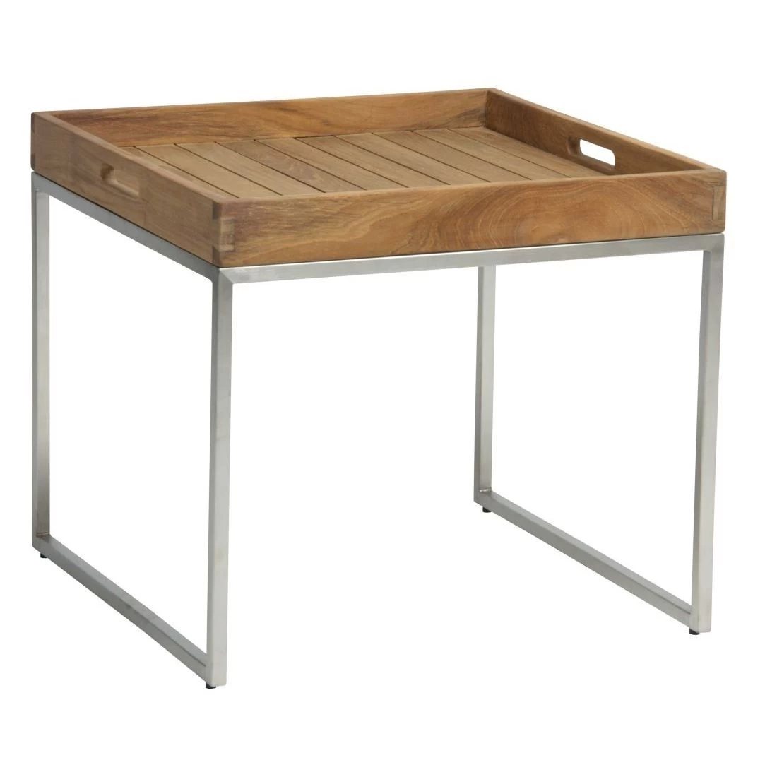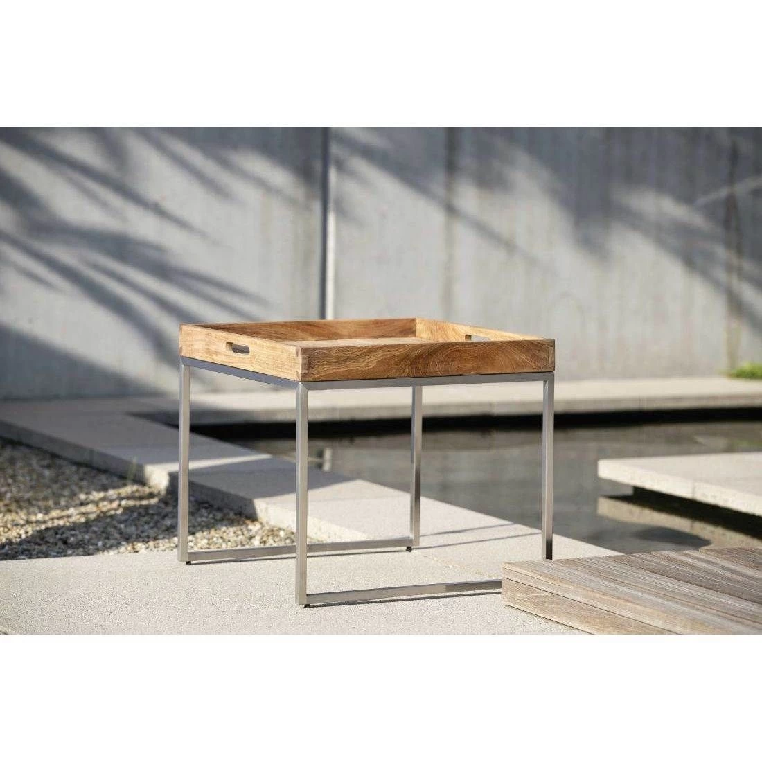 Stern Tabletttisch 50x50cm Edelstahl/Teak-Tablett Teak