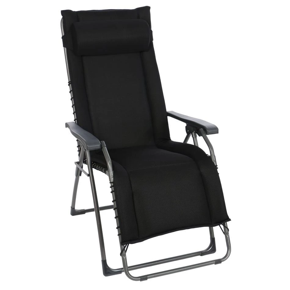 Das Gestell wird aus robustem Stahl gefertigt. Für eine attraktive Optik ist das Gestell im Farbton Anthrazit gehalten. Die Sitzfläche hat eine schöne Farbgebung in Schwarz. Der Korpus und die Sitzfläche bestehen aus Textilene.