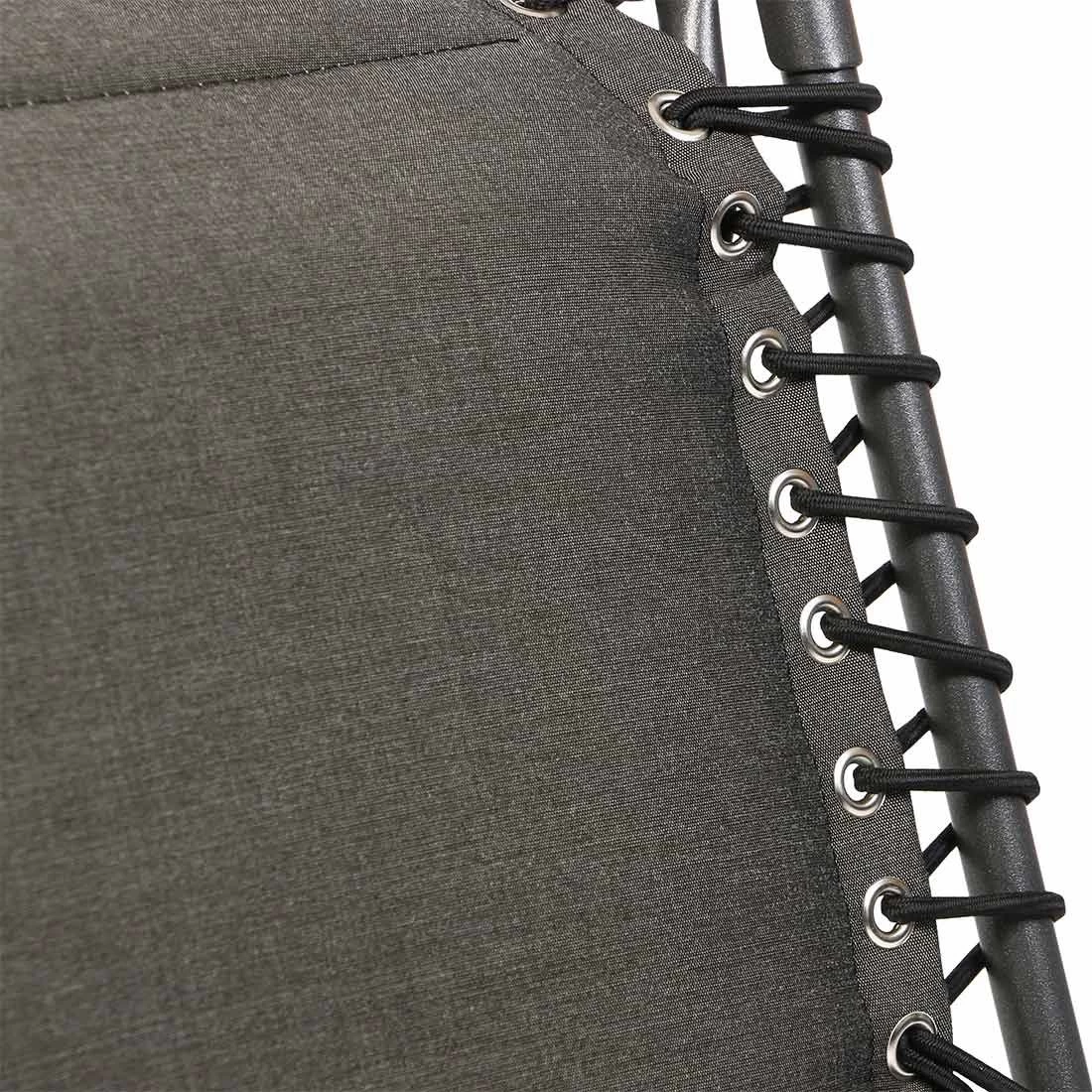Das Gestell wird aus Aluminium gefertigt. Das Material macht die Relaxliege zu einem robusten Möbel auf Ihrer Terrasse. Die Sitzfläche der Relaxliege wird mit Olefin bespannt. Für ein perfekt stimmiges Gesamtbild sorgt die einheitliche Farbgebung in stilvollem Anthrazit.