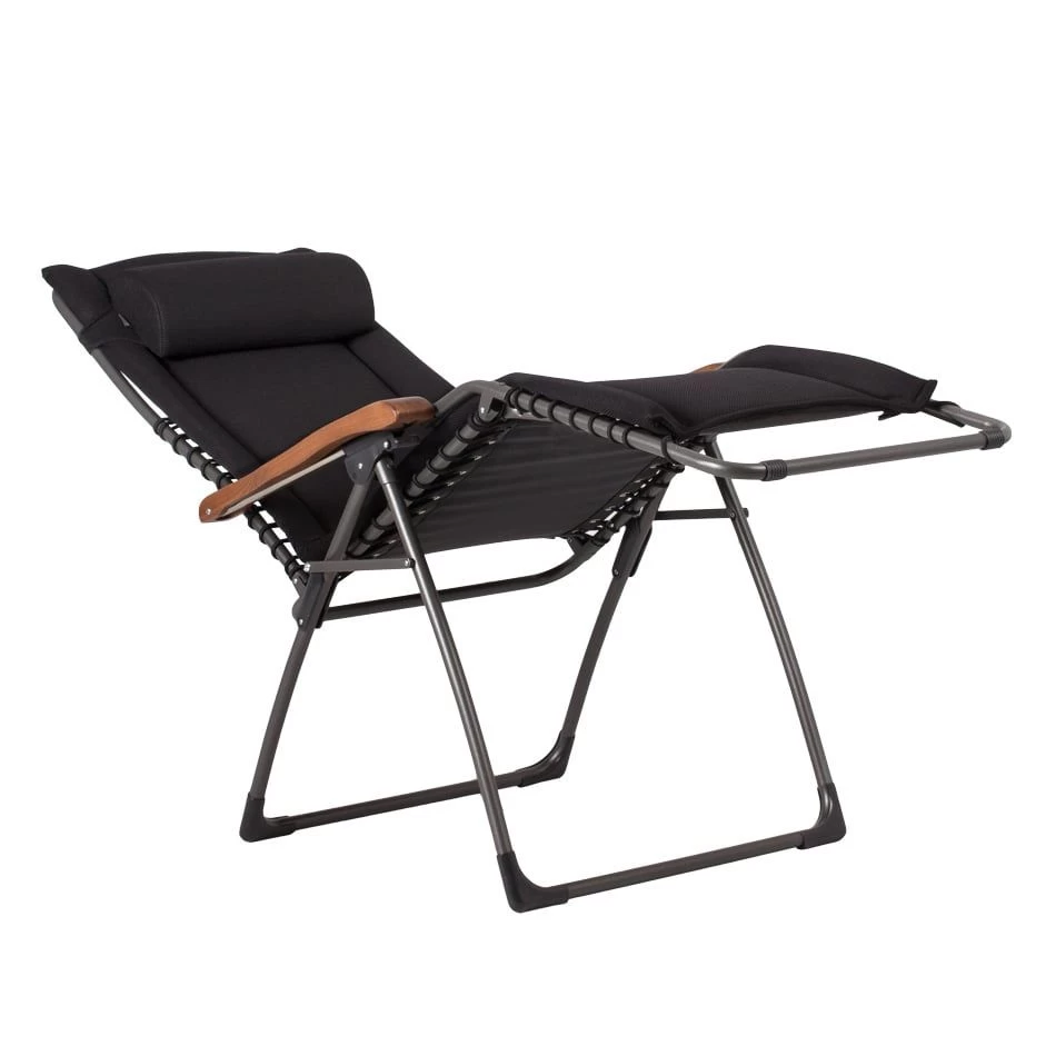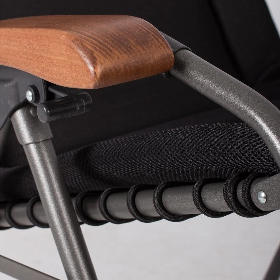 Das Gestell wird aus robustem Stahl gefertigt. Farblich ist dieses in Anthrazit gehalten. Die Farbgestaltung der Sitzfläche in Schwarz ist äußerst ansprechend. Für den Korpus und die Sitzfläche kommt Textilene zum Einsatz.