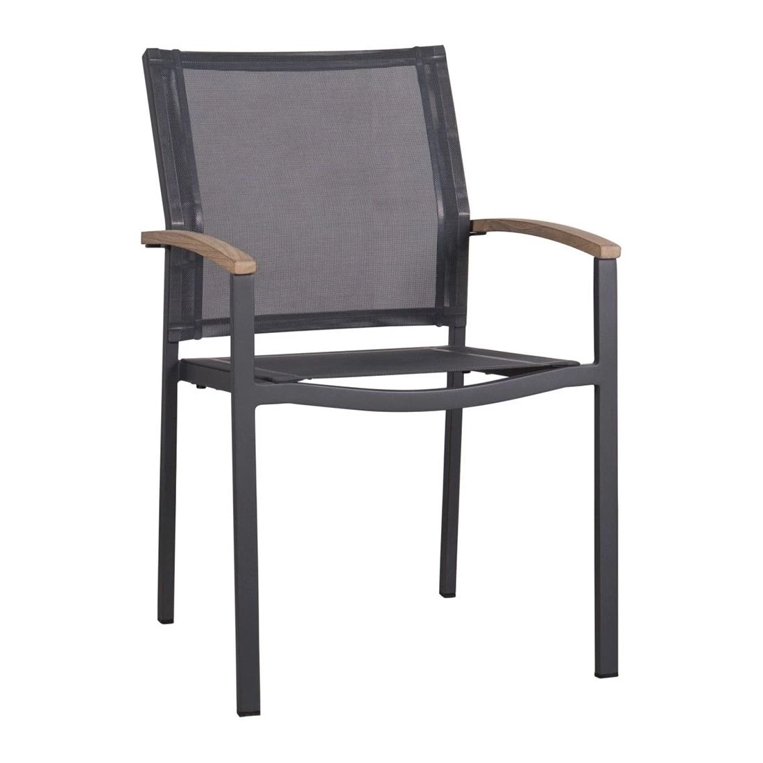 Das Gestell wird aus Aluminium in der Farbe Graphit gefertigt. Das geringe Eigengewicht des Materials macht den Stapelsessel zu einem robusten, aber dennoch leicht zu transportierenden Sitzmöbel auf Ihrer Terrasse.